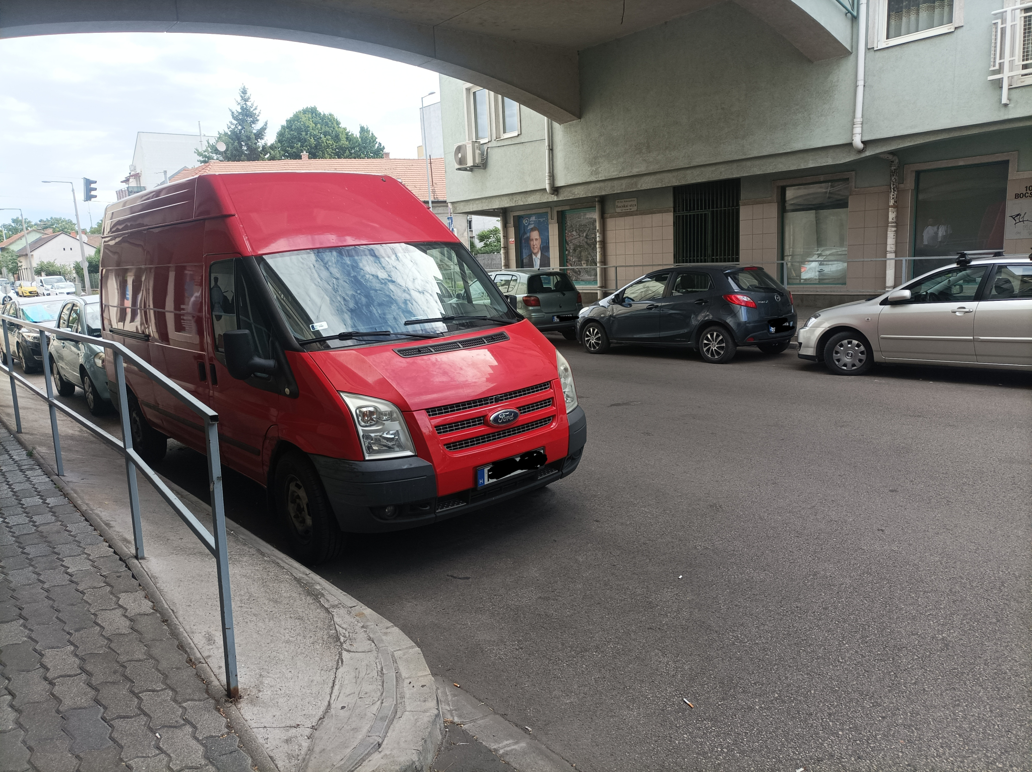 A XV. kerületi, Bocskai u. 5-7. sz. alatti, ill. a vele szemben található mélygarázsból való ki-, és behajtás nem biztonságos, a szabad kilátást akadályozó, parkoló személyautók, ill. furgon, kisteherautó akadályozzák.
