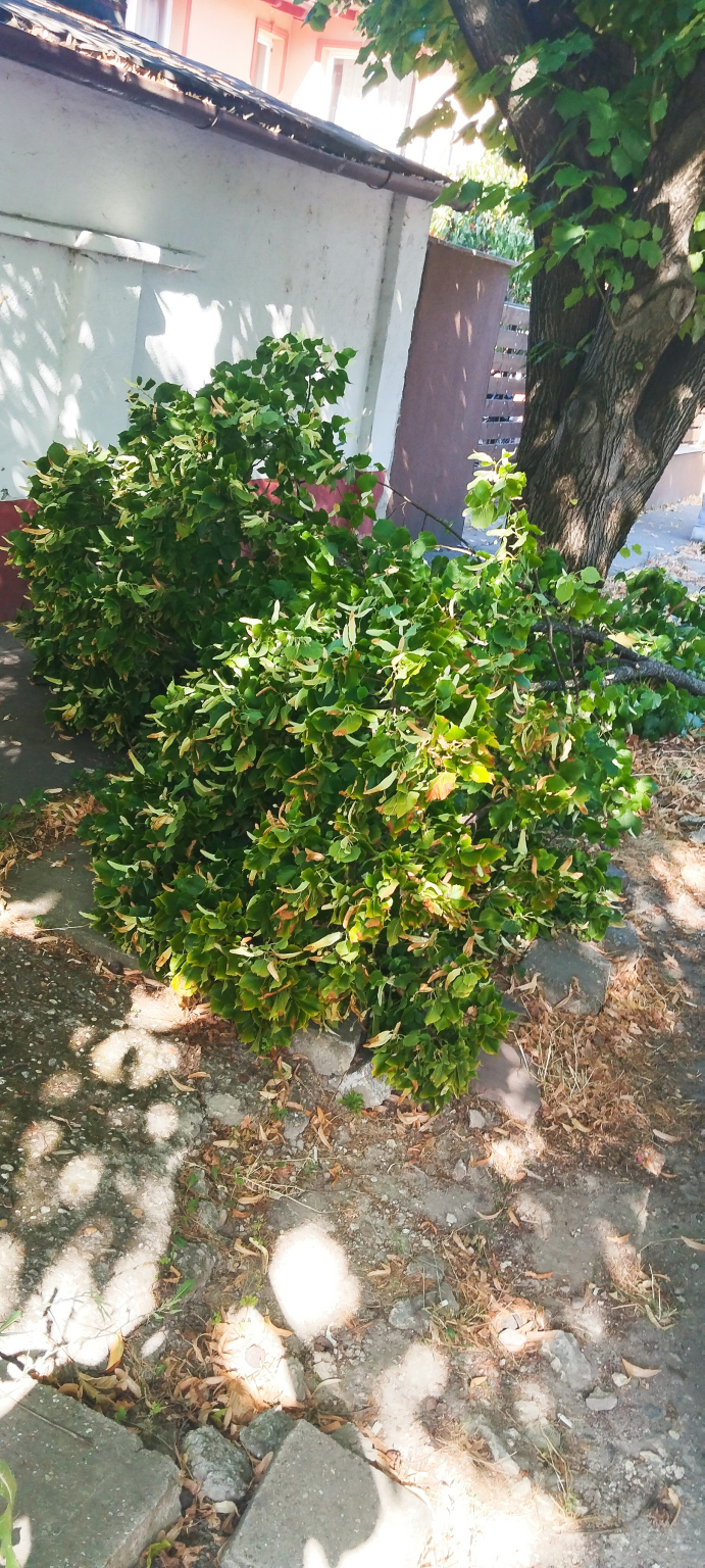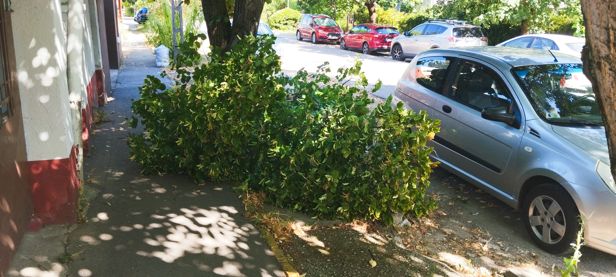 Egy nagyobb darab ág letört az ingatlanunk előtt. Ezáltal a parkolás lehetetlen, és a faág a járdára is rá lóg.