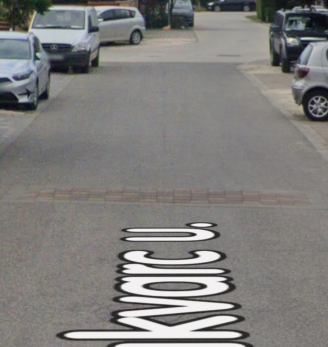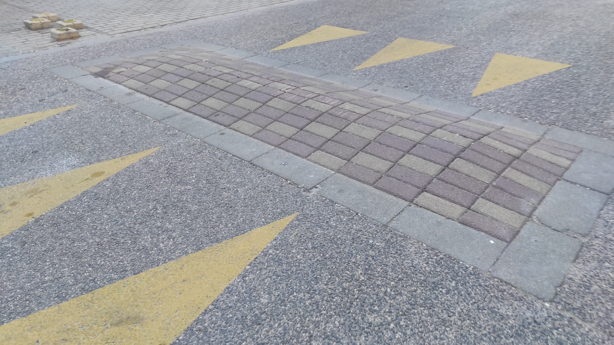 Lakó-pihenő övezetben az egyetlen fekvőrendőr. Kérném elbontani, vagy a jogszabályoknak megfelelően kiépíteni. Képeken a fekvőrendőr állapota, megszámolni se lehet hány autó ér hozzá. Figyelmeztető tábla nem található, hogy fekvőrendőr következik.