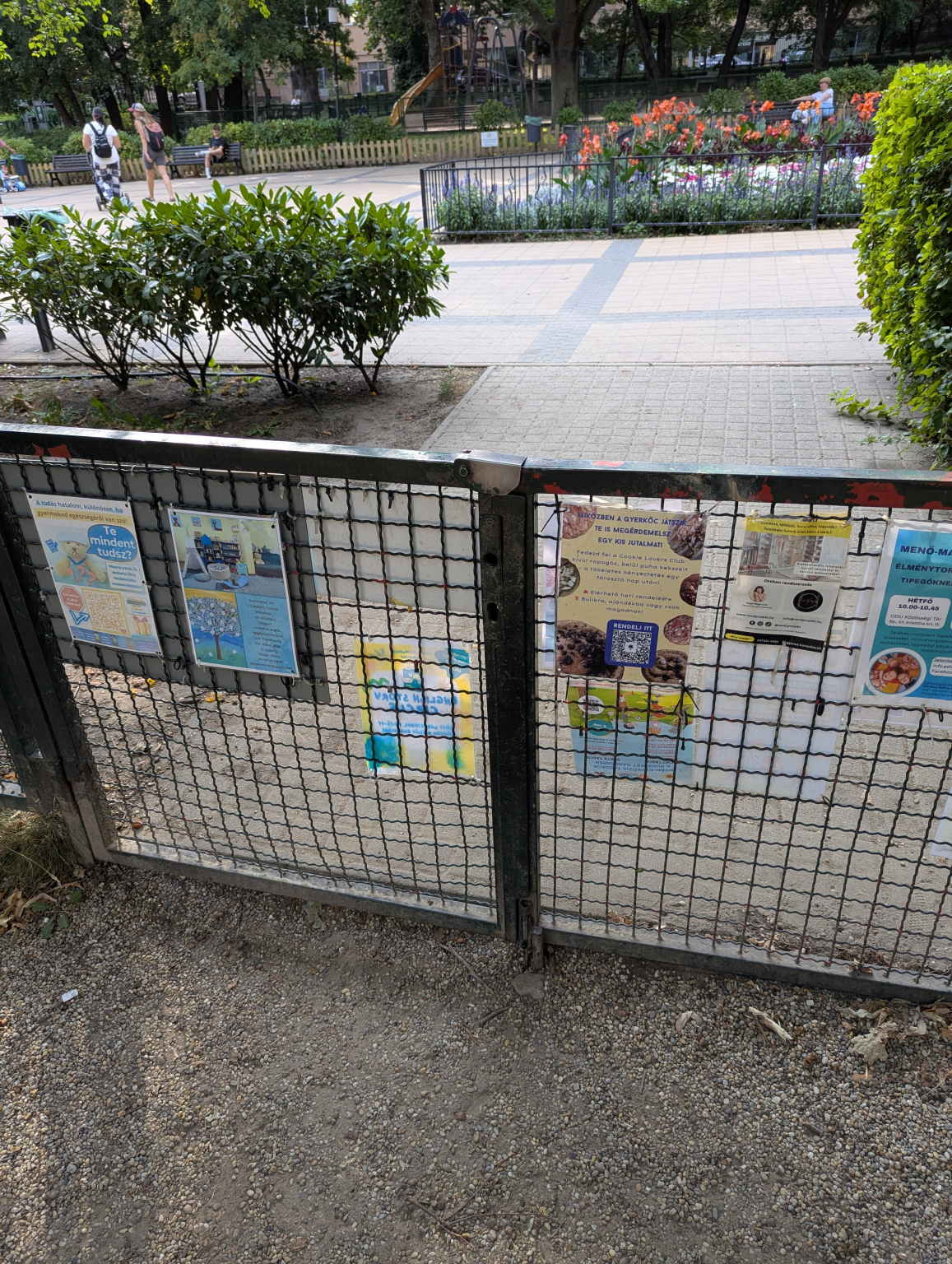 A játszótérnek a kapuját meg kellene igazítani mert nehezen nyitható