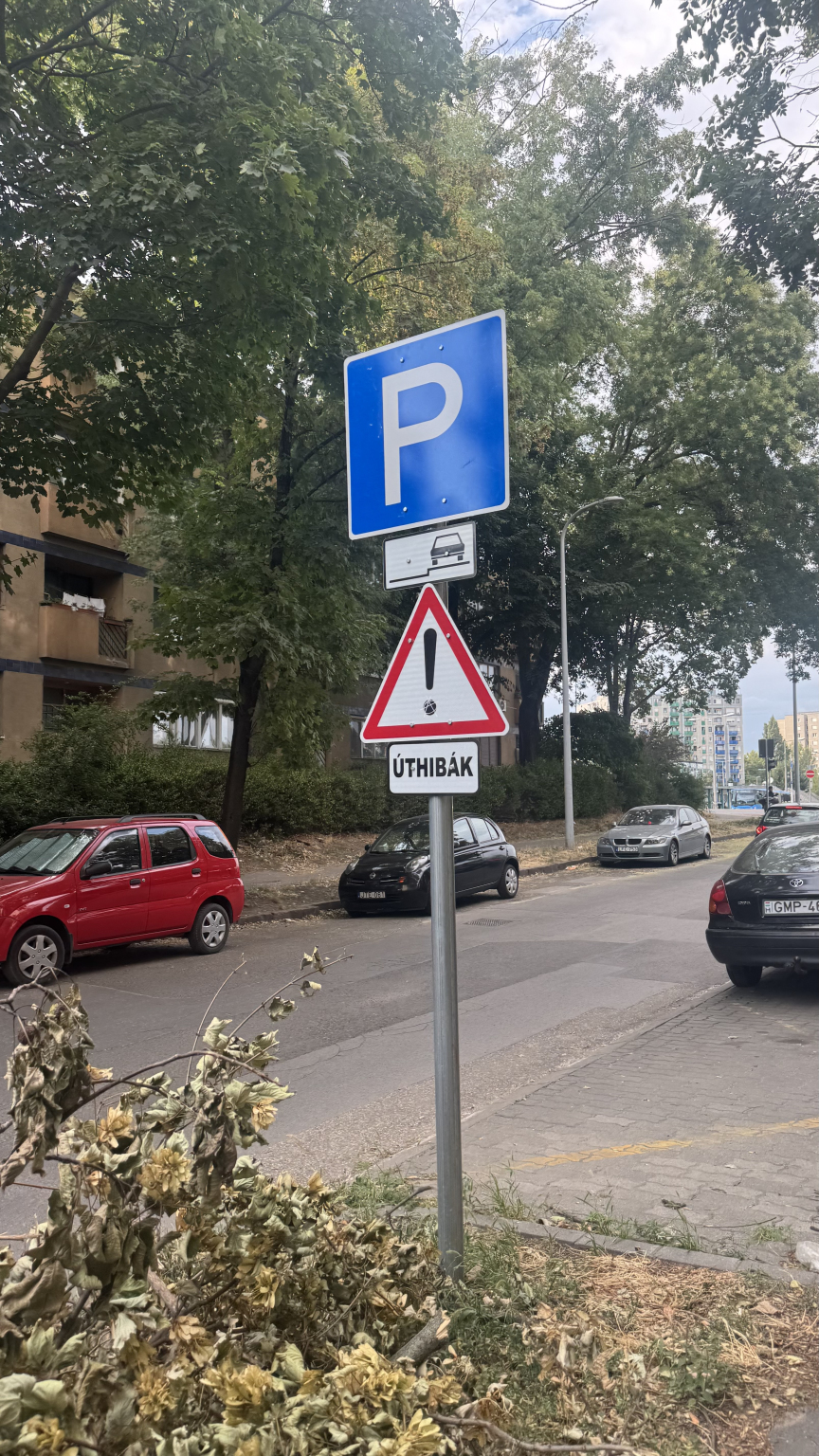 Tájékoztatjuk, hogy az úthibákra vonatkozó jelzőtáblát az út kezelője helyezi ki, az útburkolat állapota miatt.