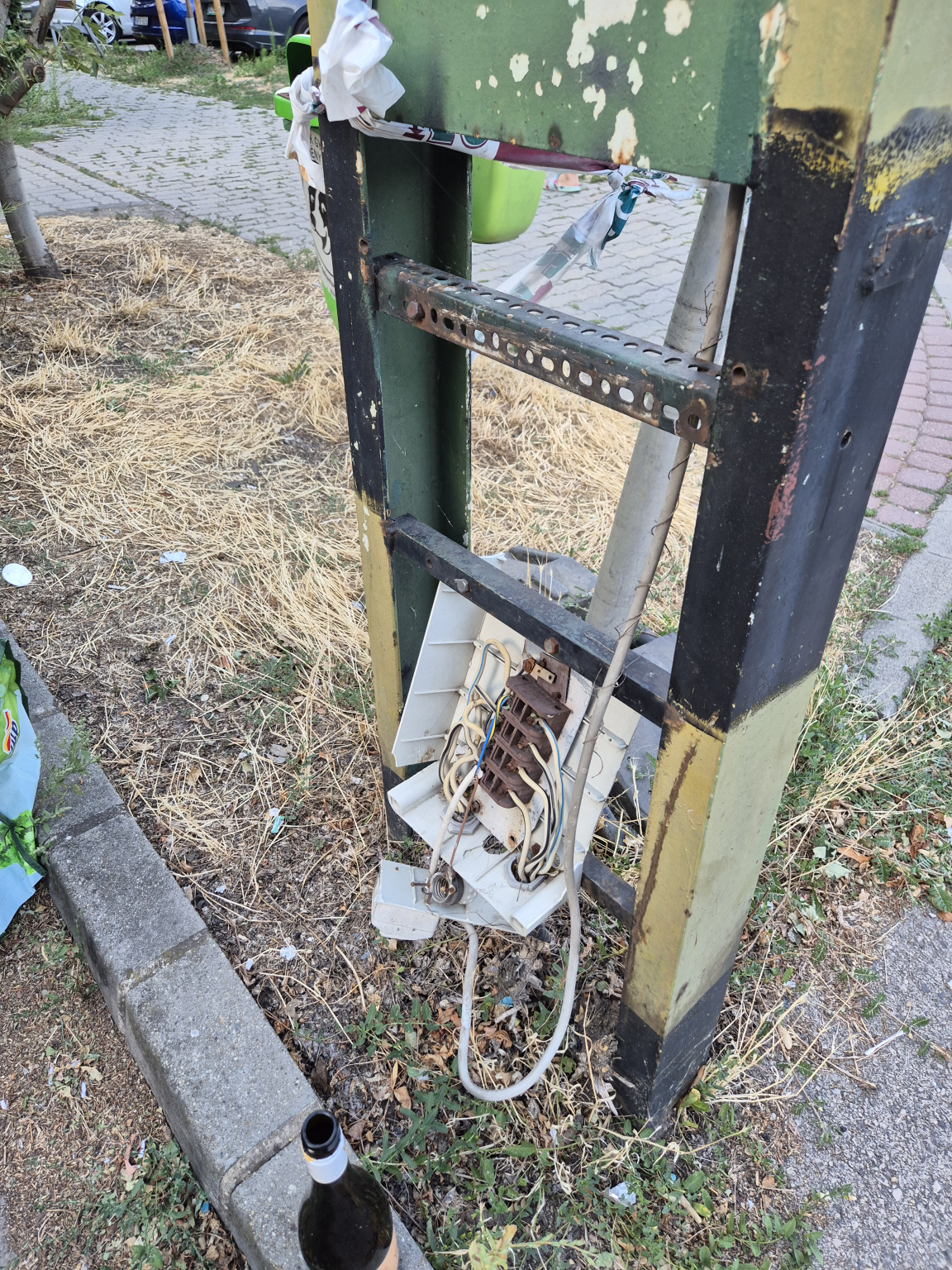 Társashazunk mellett egy régi lampaoszlopbol kiáll egy elektromos berendezes, ami veszelyes. Kerem a doboz eltavolitasat, koszonom