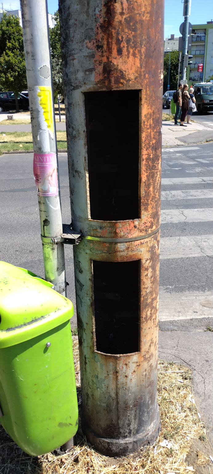 Nyitva van a közlekedési lámpákat tartó oszlop nyílása, az emberek odaszemetelnek, kérem az illetékes szervet intézkedjenek.