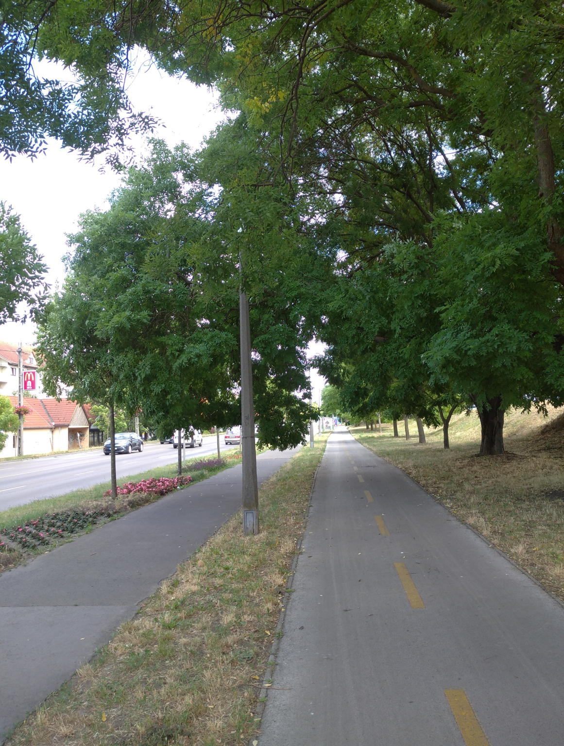 A Borsó utca és a Kis utca között több helyen nagyon belógnak a faágak a járdára és a bringaútra.
