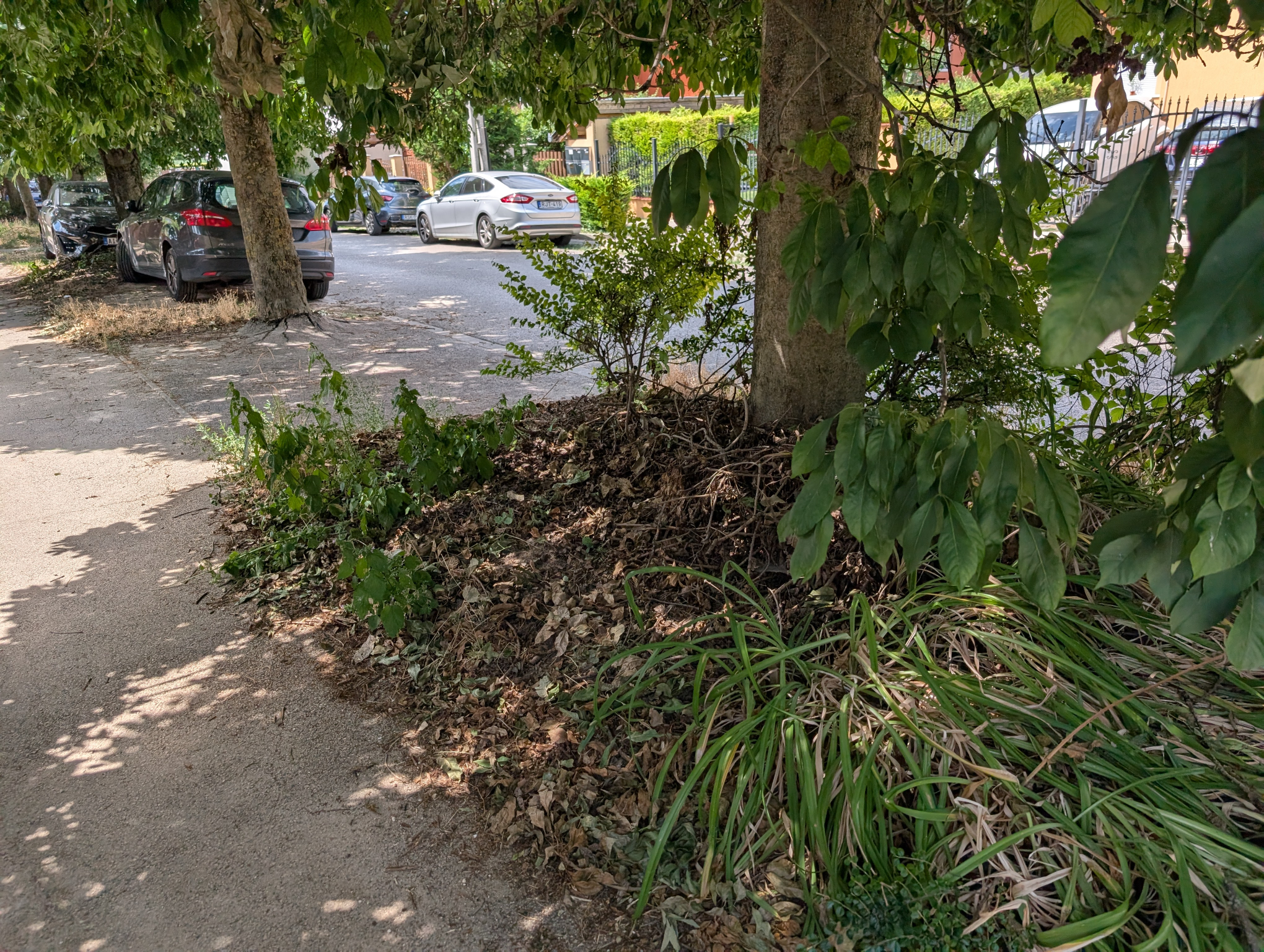 A Függőcinege u. 6., 8., sz alatti társasház előtt 20 éve elültetett fák semmilyen szinten nincsenek gondozva, ezáltal nagyon alacsonyan vannak az alsó ágak, még egy alacsony növésű felnőtt sem fér alatta. Esős időben a gyalogos ruházatát piszkolja, vizes lesz a járőkelő haja, ruhája. A száraz ágak sincsenek levágva, szélben törik, csapkodja a fa az embert. A fák környezete is rendezetlen, a járda sincs takaritva.