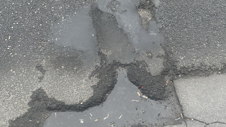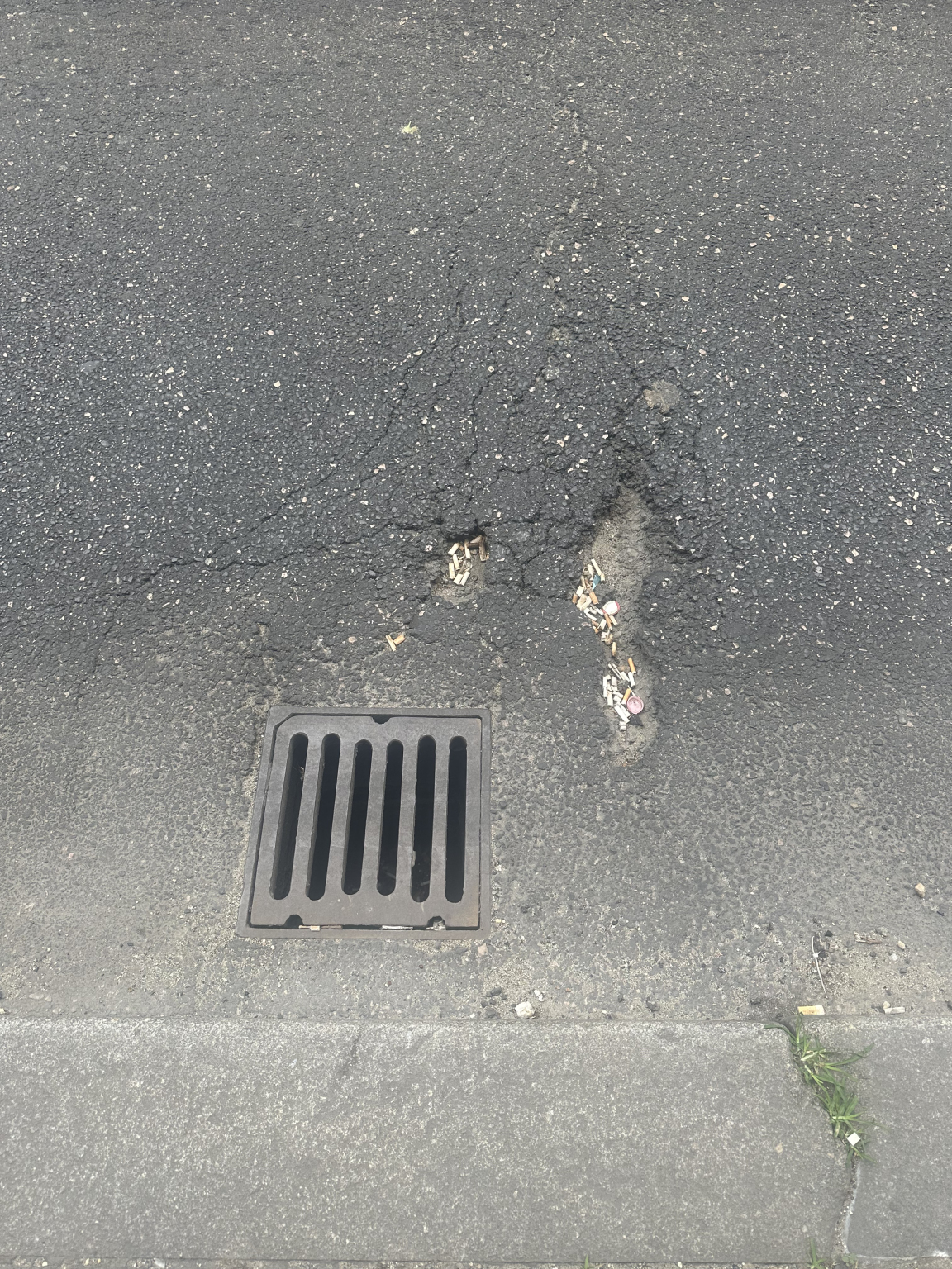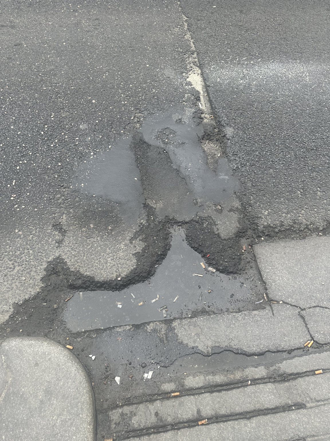 Megsüllyedt csatornafedél és hatalmas kátyú