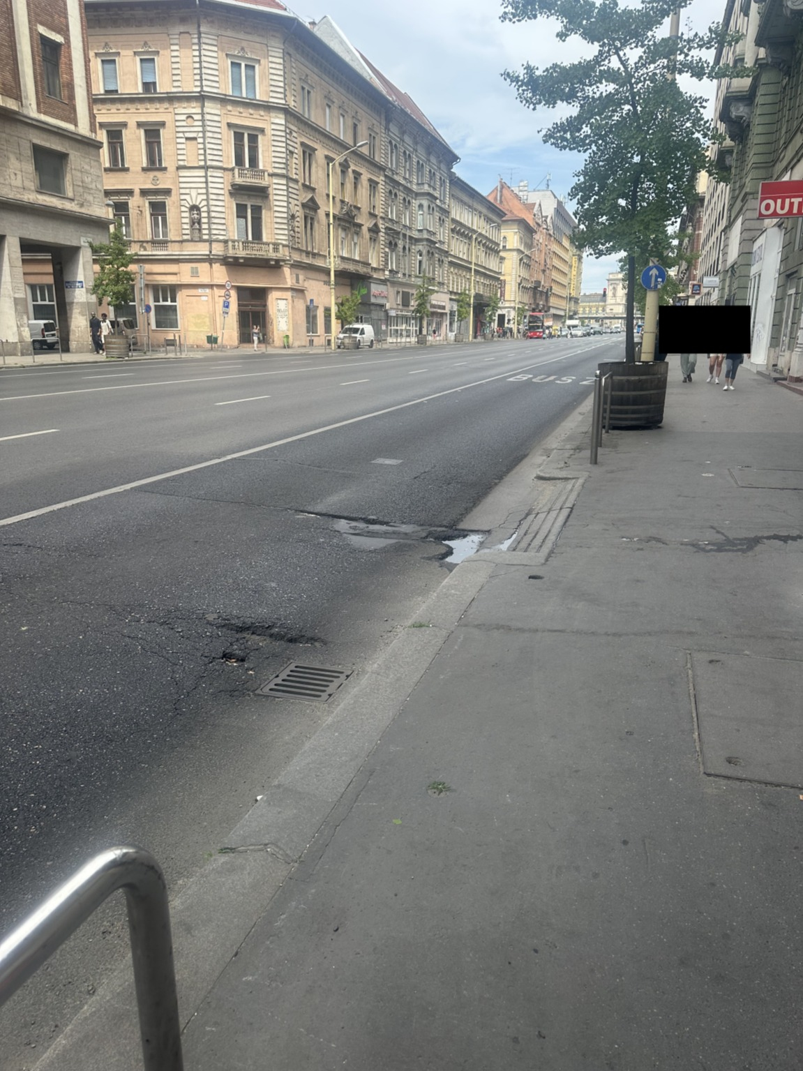 A Rákóczi út 61 szám előtt a csatornafedél megsüllyedt .