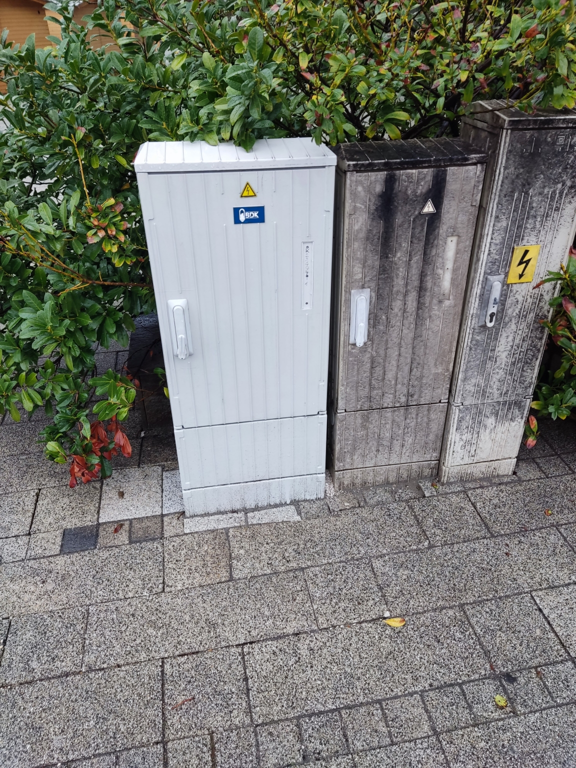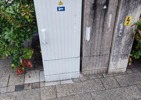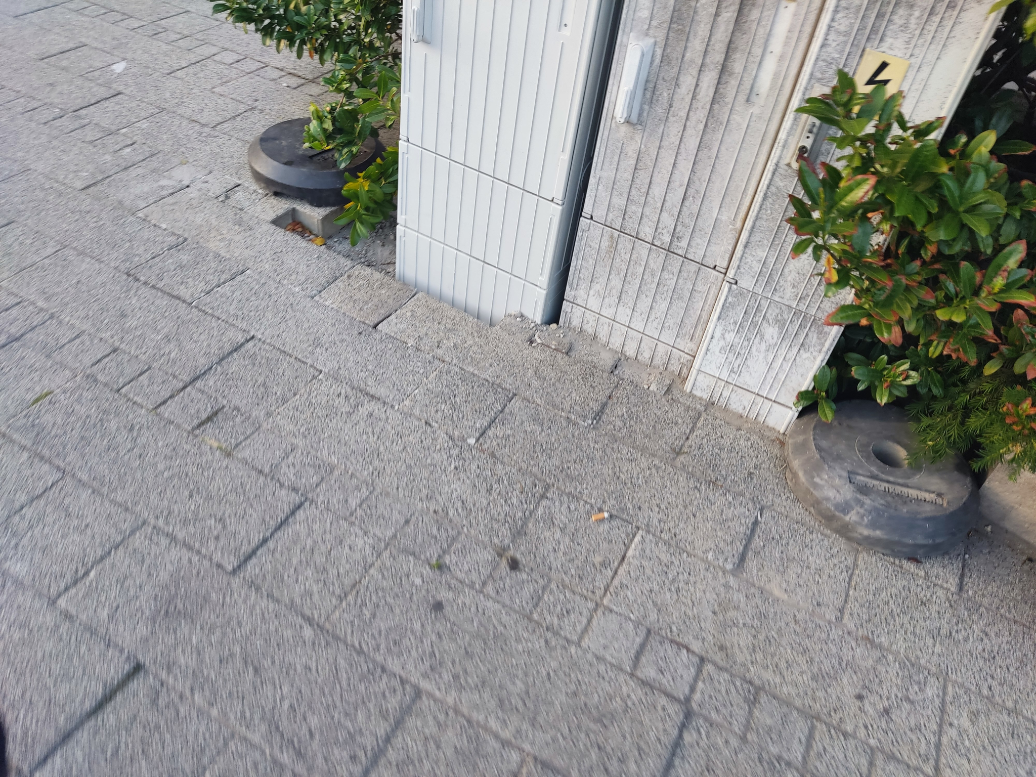 Hiányzó térkő a cserélt elektromos szekrény mellett