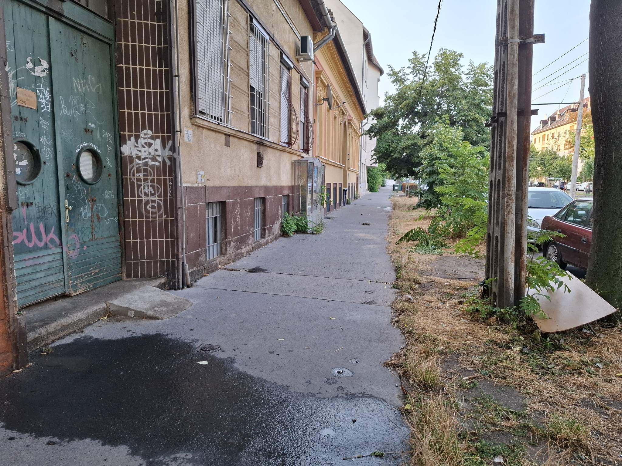 A Róna utca 139 előtt a villanyoszlop tövében maradt egy vékony fa munkalap.