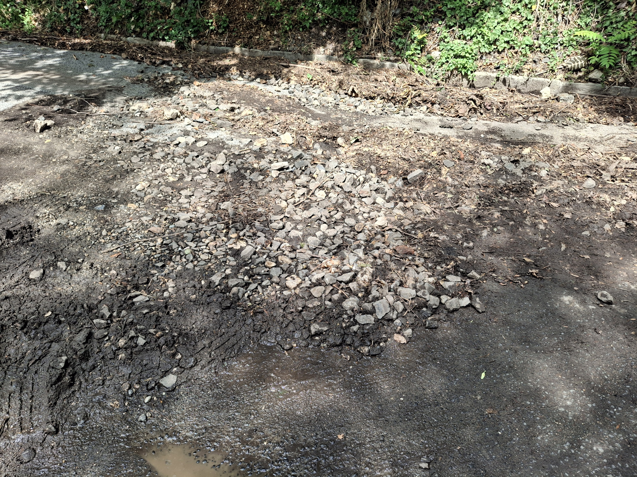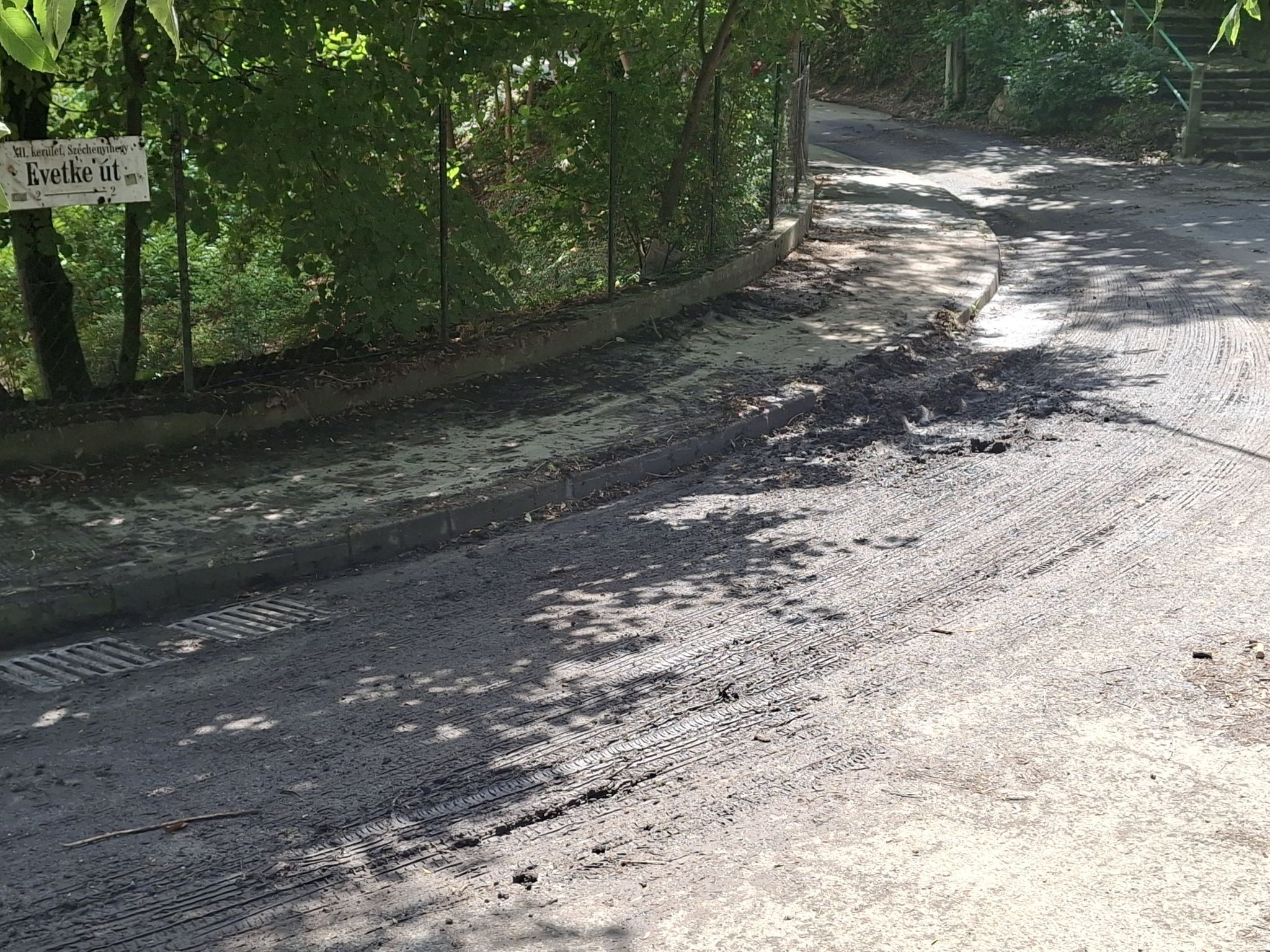 Hosszú távú megoldás: a fogaskerekű vízelvezető árkának kitisztítása, a beomlás elhárítása. Évek óta kérem a BKK-t erre sikertelenül. Pedig ez okozza azt, hogy a víz átbukik és viszi magával a kavicsot.