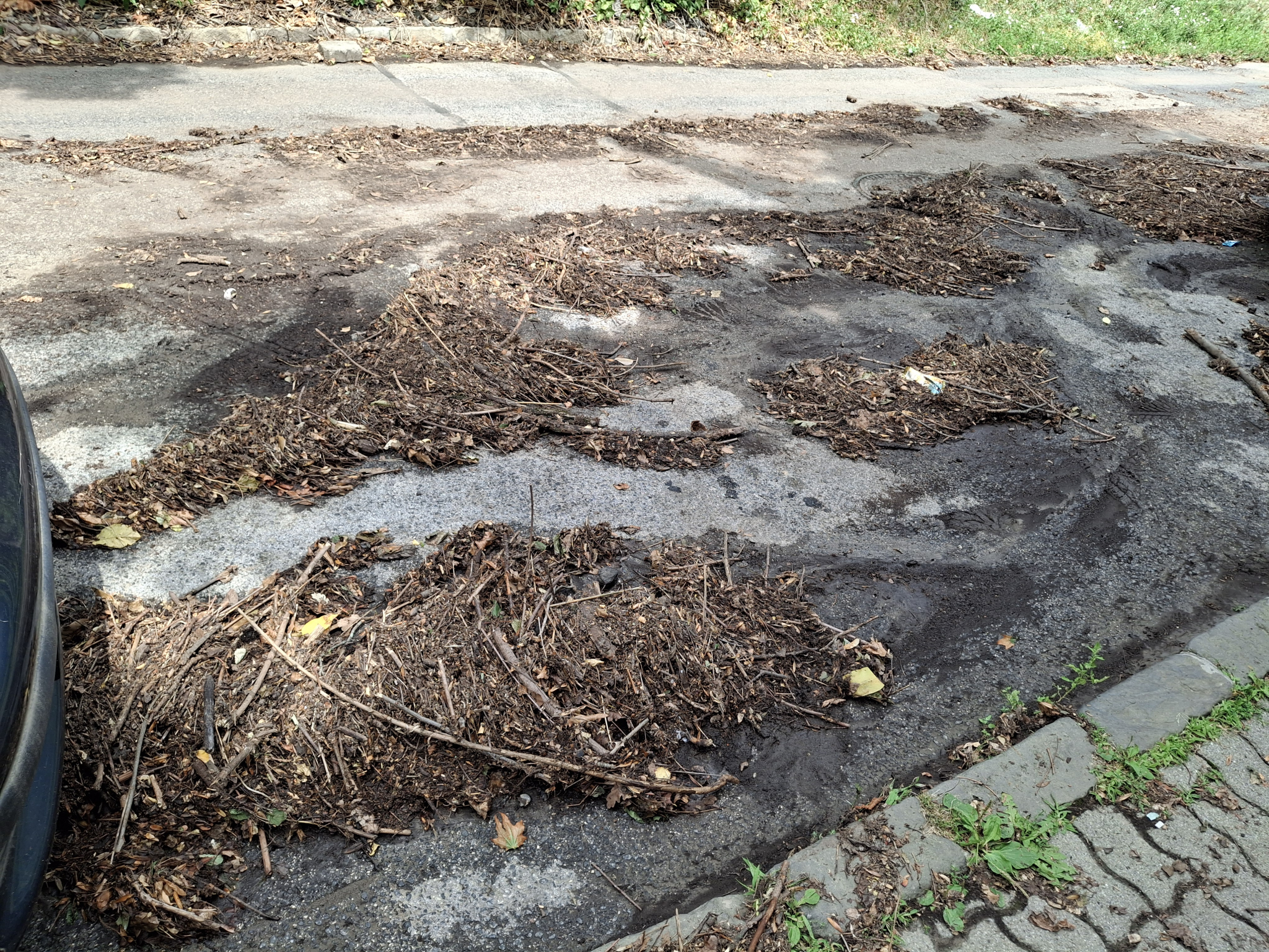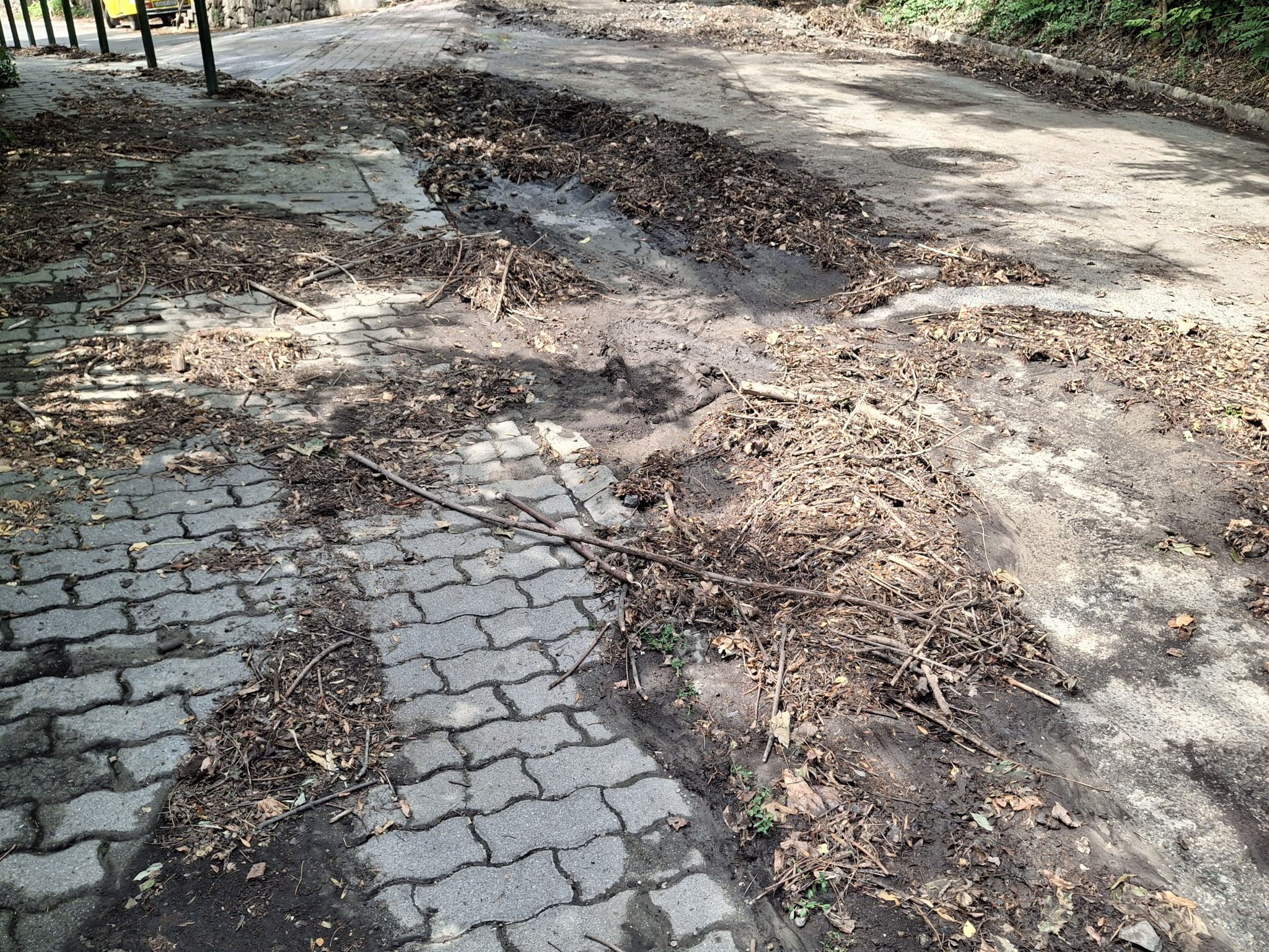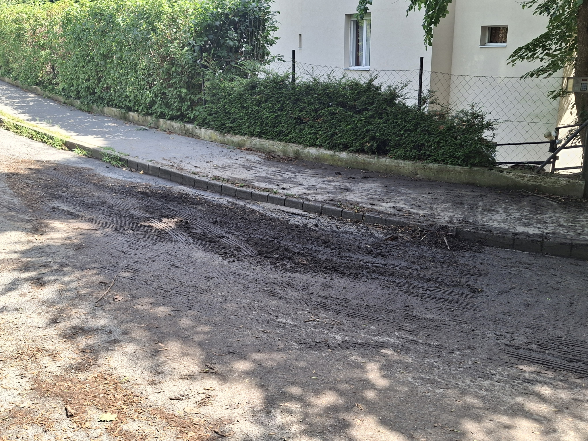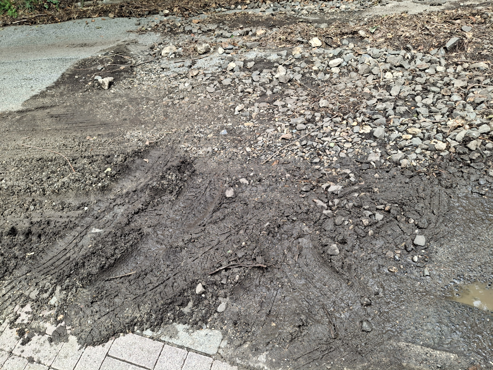 A XII. kerület Karthauzi utca és Evetke út sarkán a ma éjszakai (július 25-26). vihar után jelentős mennyiségű kavics, sár és szennyeződés került az úttestre és járdára.