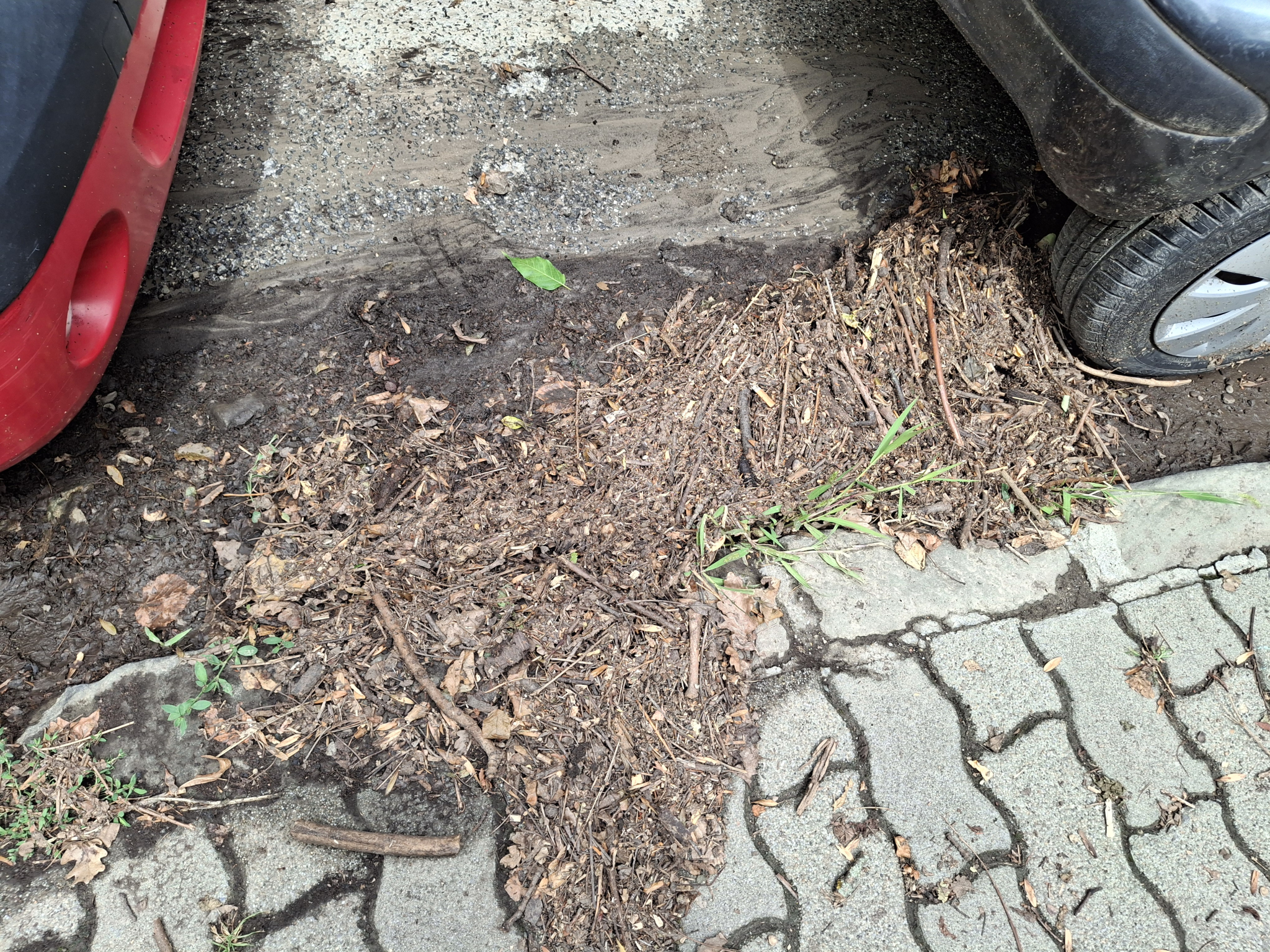 Saras, hordalékos sarok vihar után