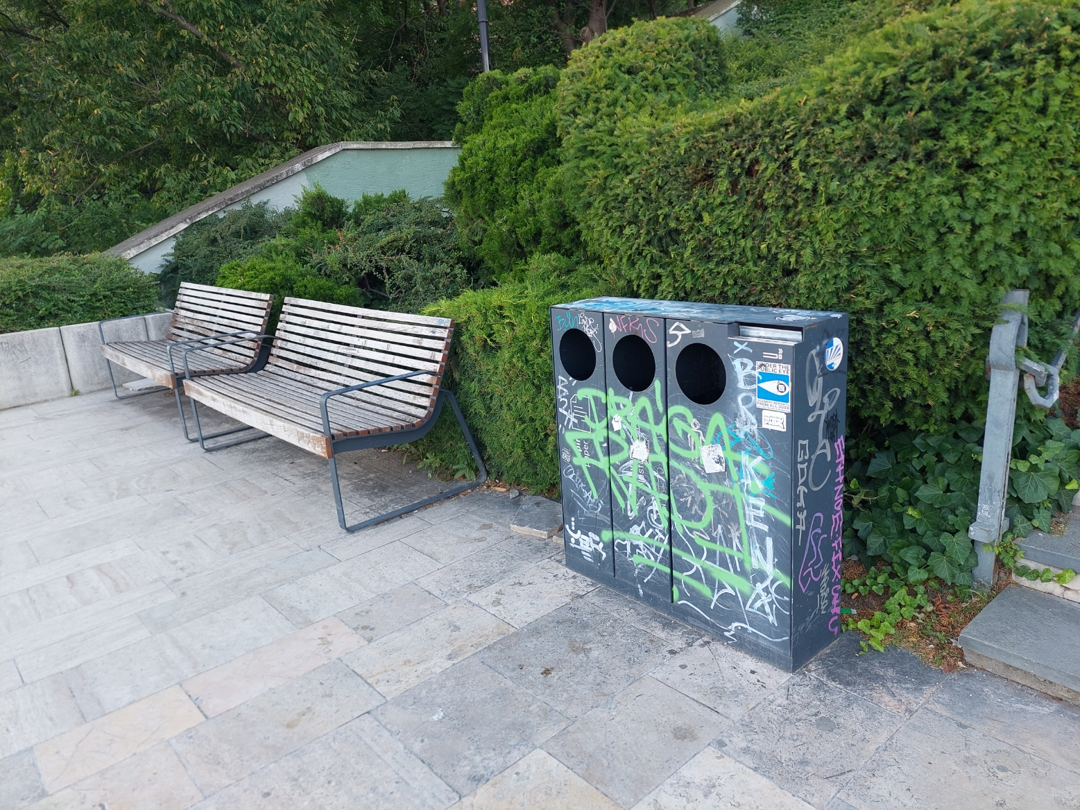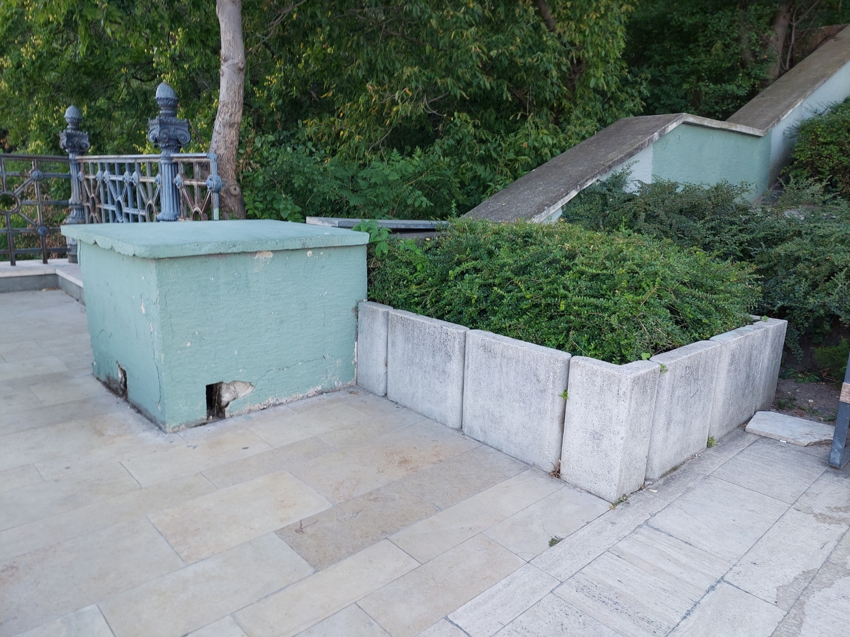 Kérem, a Lánchíd alagút fölötti terasz rendbetételét. Kiemelve: a padok, a szemetesek és a lépcső szorul javításra.