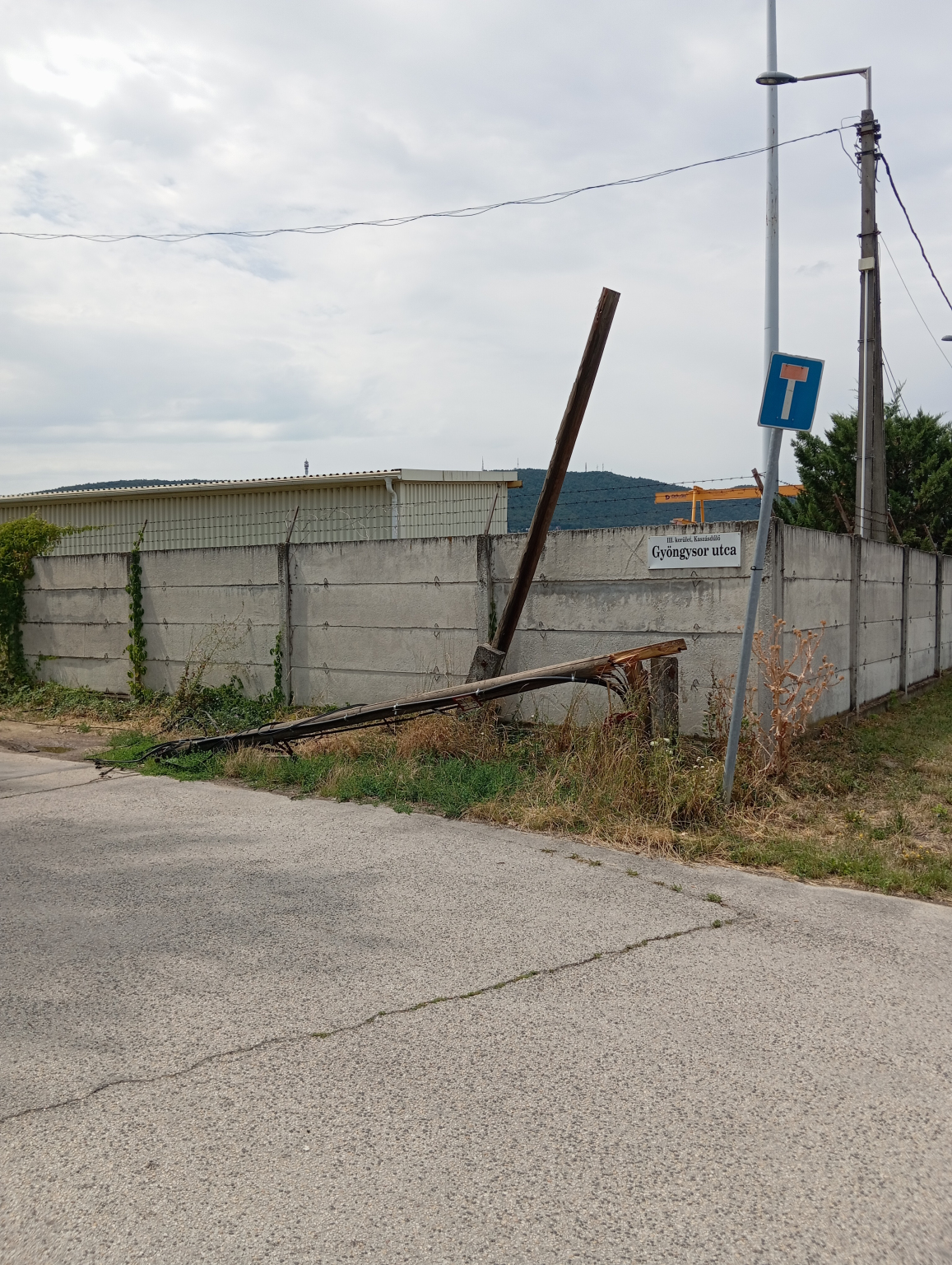 Kérem az Elektromos Műveket, hogy a képen látható villanyoszlopot legyenek szívesek helyreállítani!