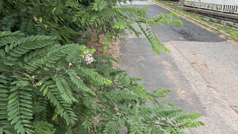 Az úttest fele járhatatlan a belogó növényzet miatt.