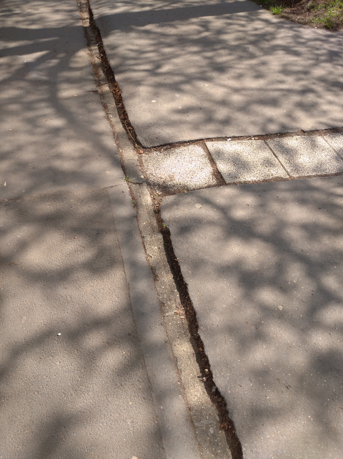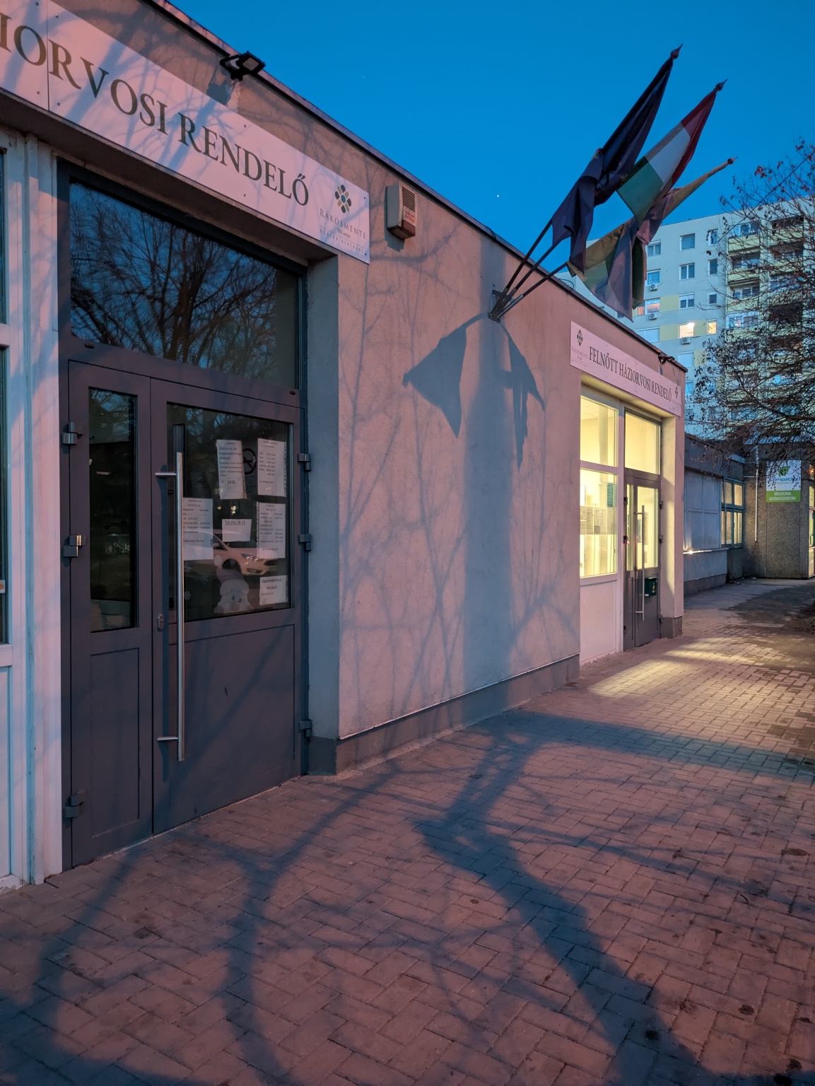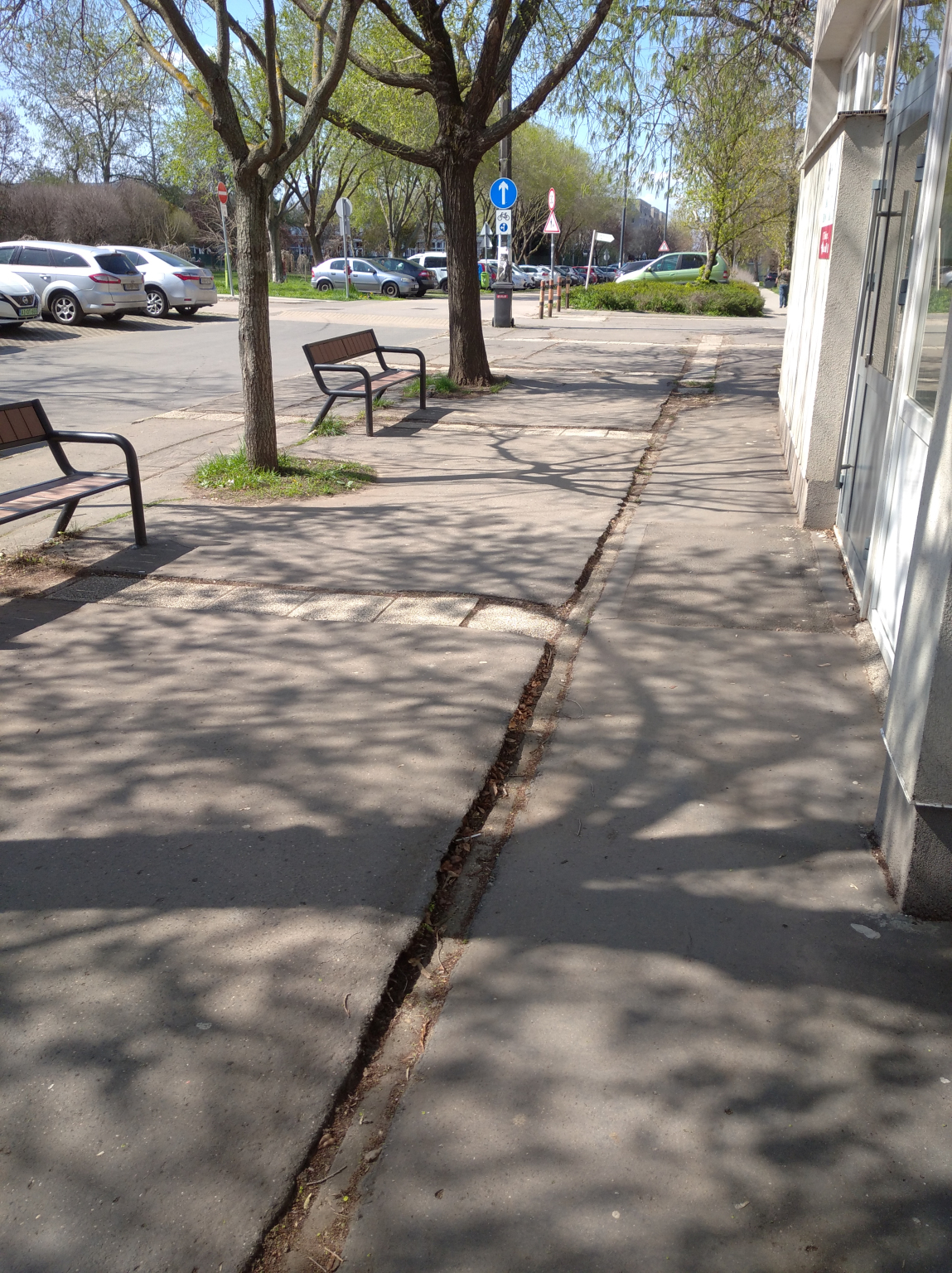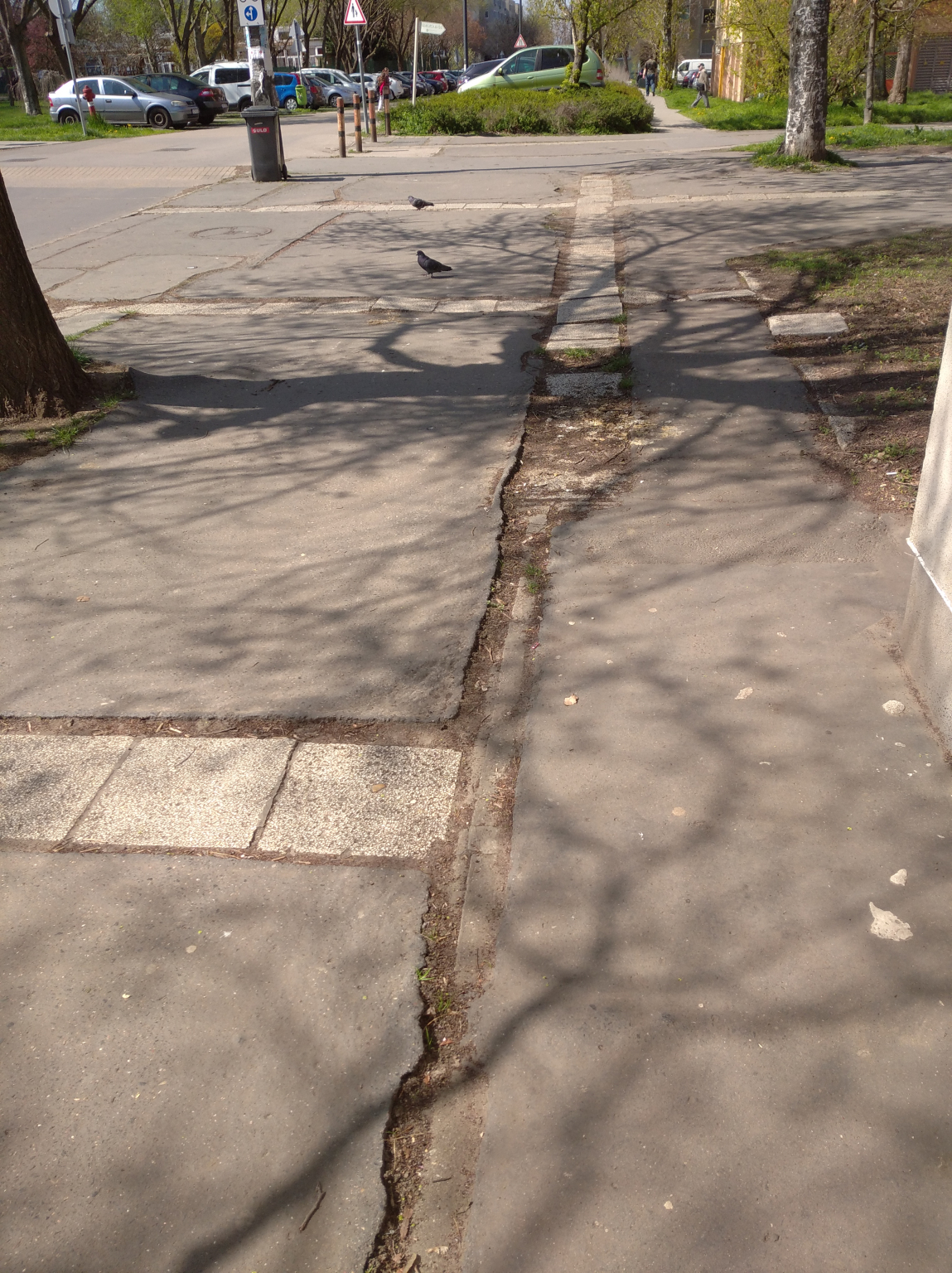 Borzalmas állapotban van a járda az orvosi rendelő előtt. Balesetveszélyes.