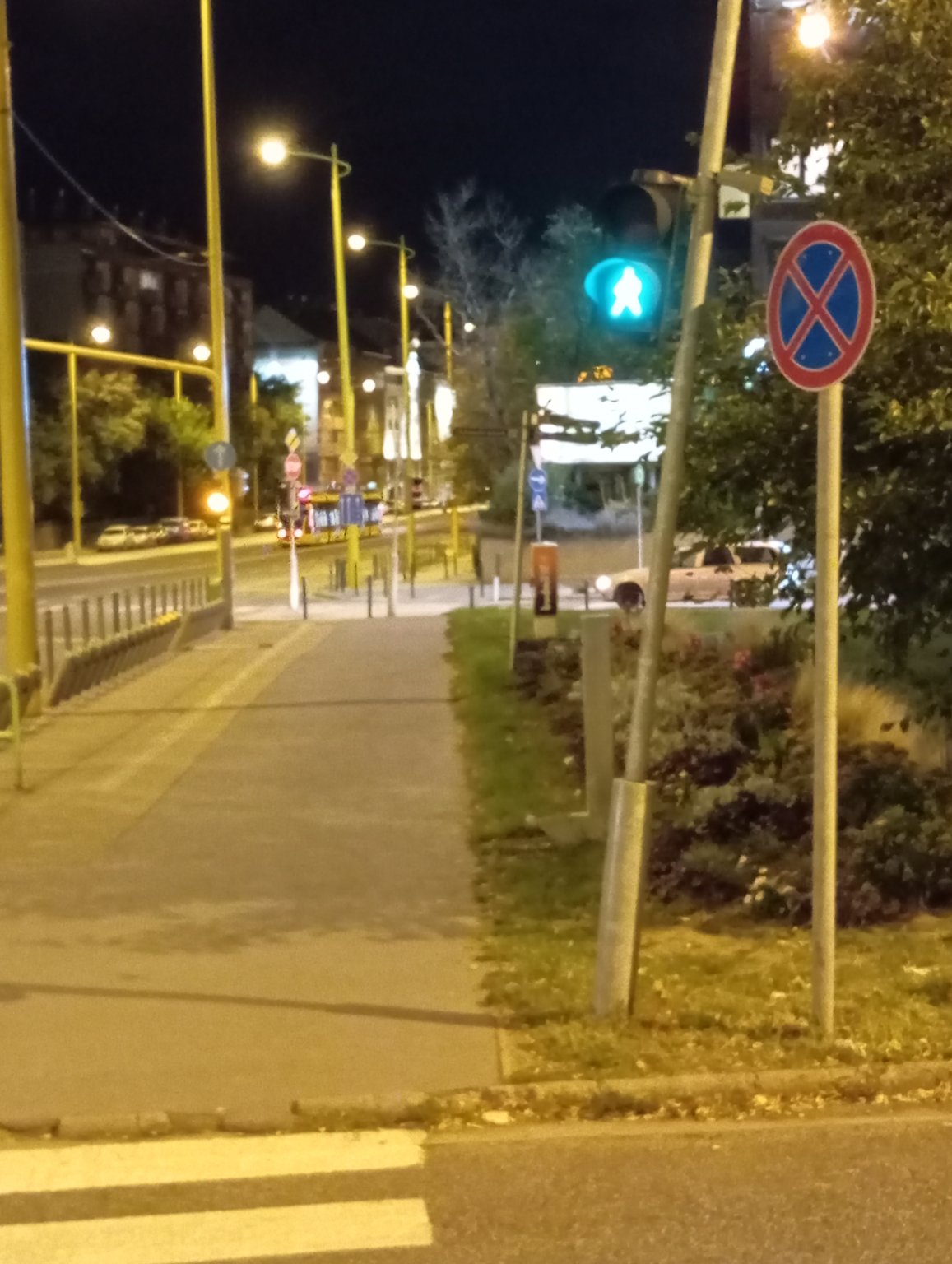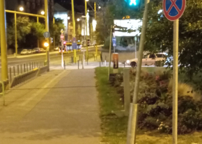 Kérem az illetékest, hogy a képen látható, kidőlni készülő jelzőlámpát állítsák vissza!