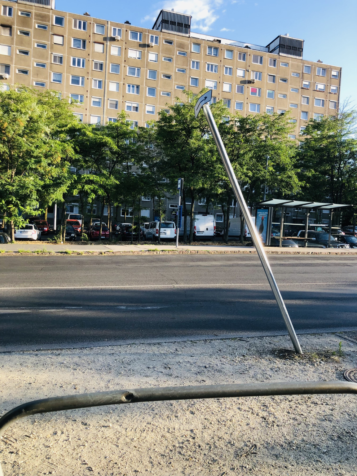 Kérem, a pollert tegyék vissza a helyére, vagy szállítsák el, és a megdőlt, sérült táblát is állítsák helyre!