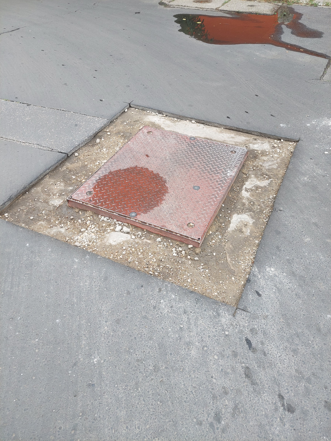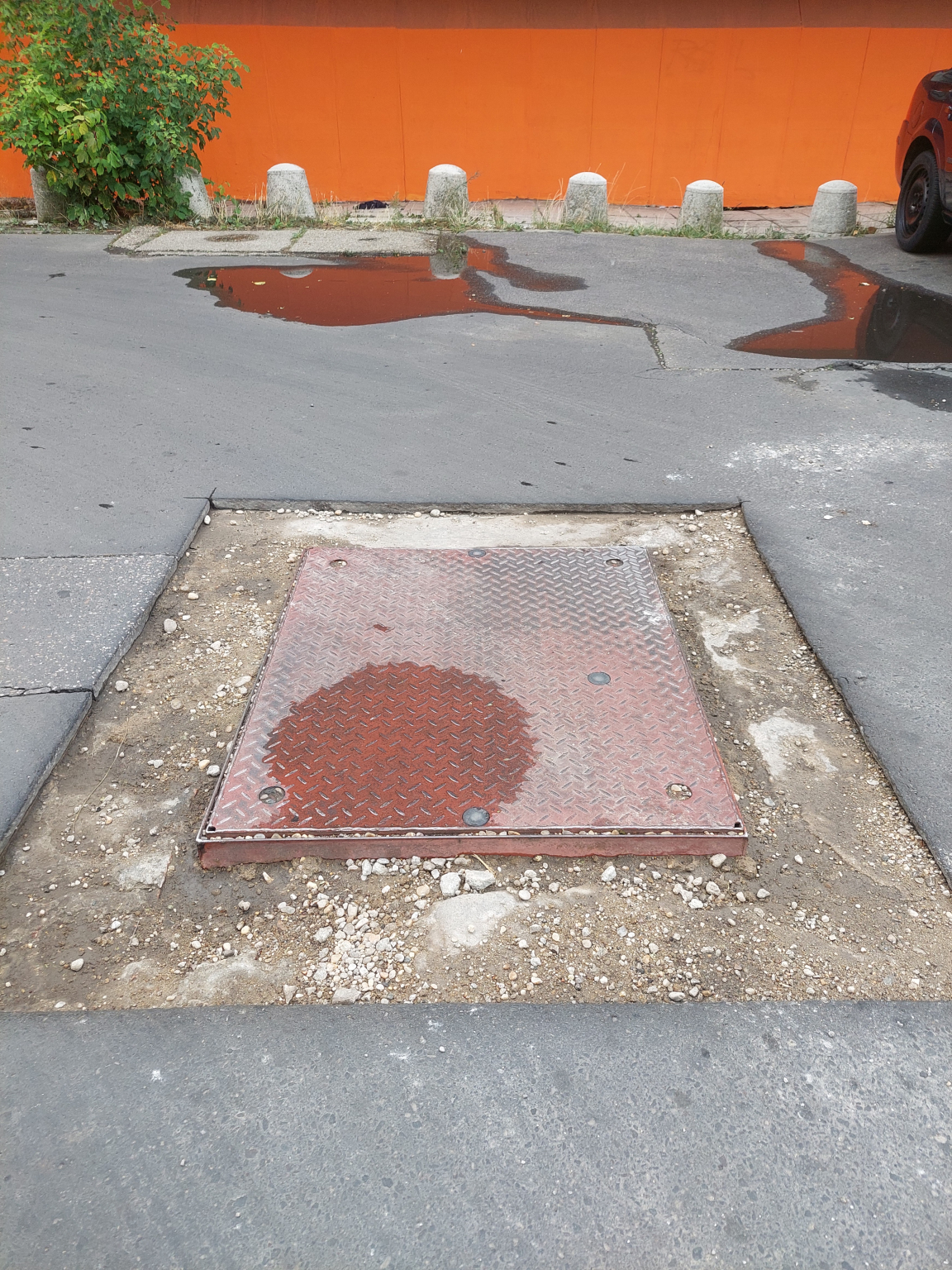 Hetek (hónapok?) óta befejezetlen aknafedél keseríti az itt közlekedők életét. A hiányzó betonrétég miatti több centis szintkülönbség ráadásul pont az autók nyomvonalába esik.