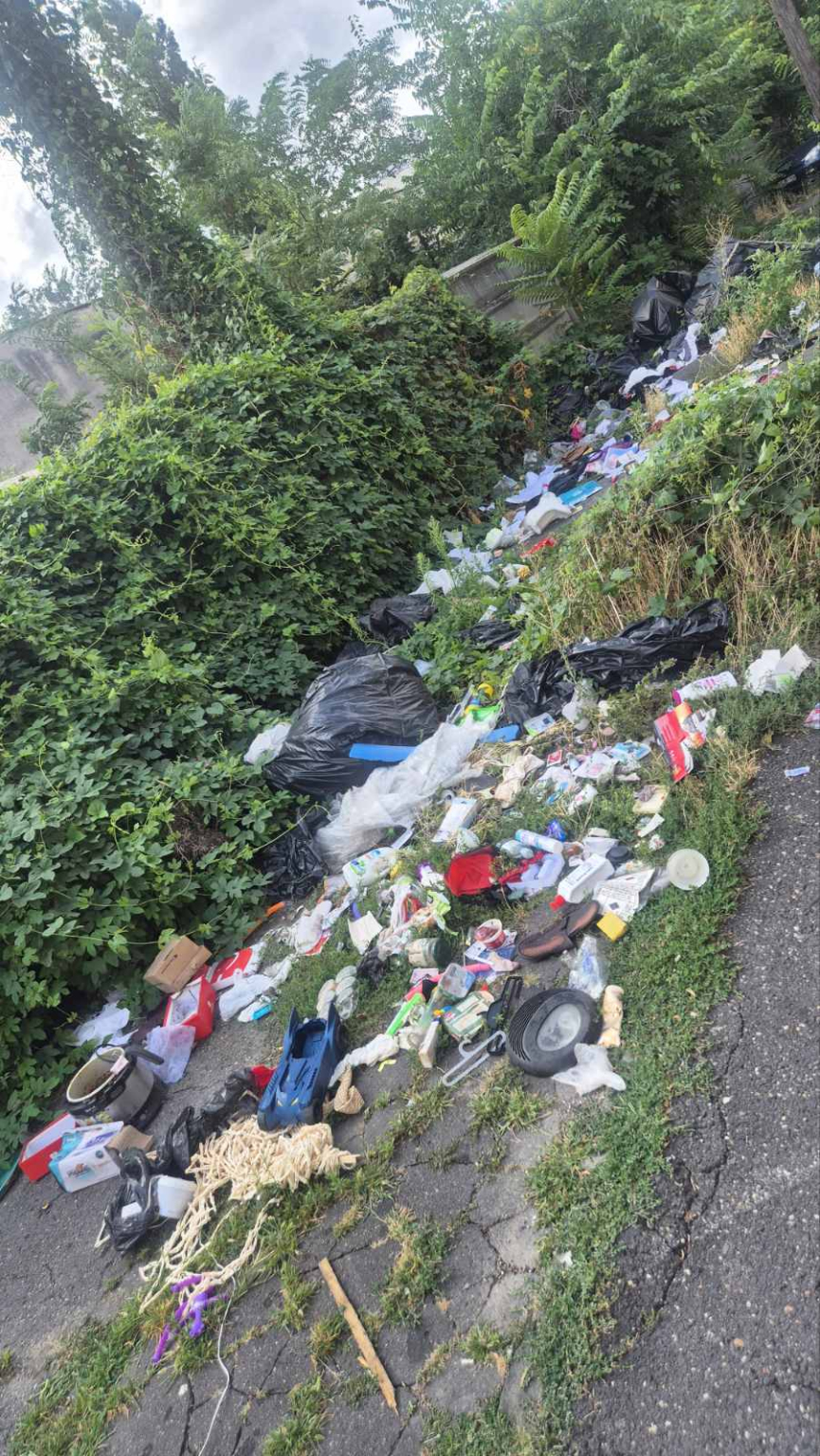 A XIX. kerületben, aFöldváry utca területén több zsáknyi háztartási hulladék és lom (pl. bútor, kartondobozok, ételmaradványok, ruhák) lett illegálisan kihelyezve. A szemét közvetlenül a járda melletti zöldsávon található, szabadon.