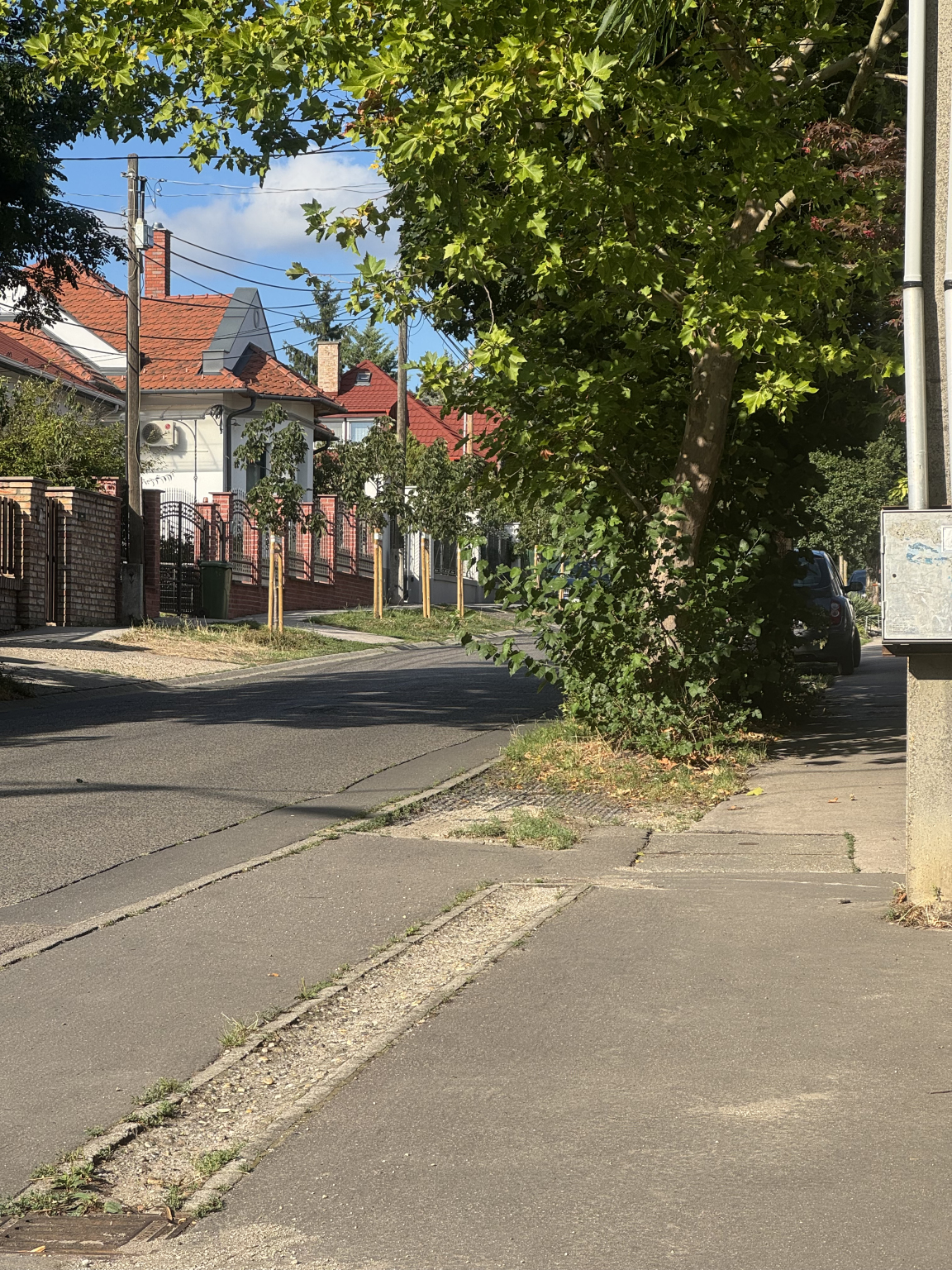 XVI. Ker. Sasvár utcában a Sashalmi sétányról nem belátható a zavaró növényzet miatt