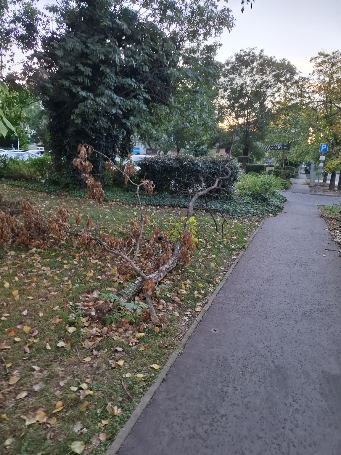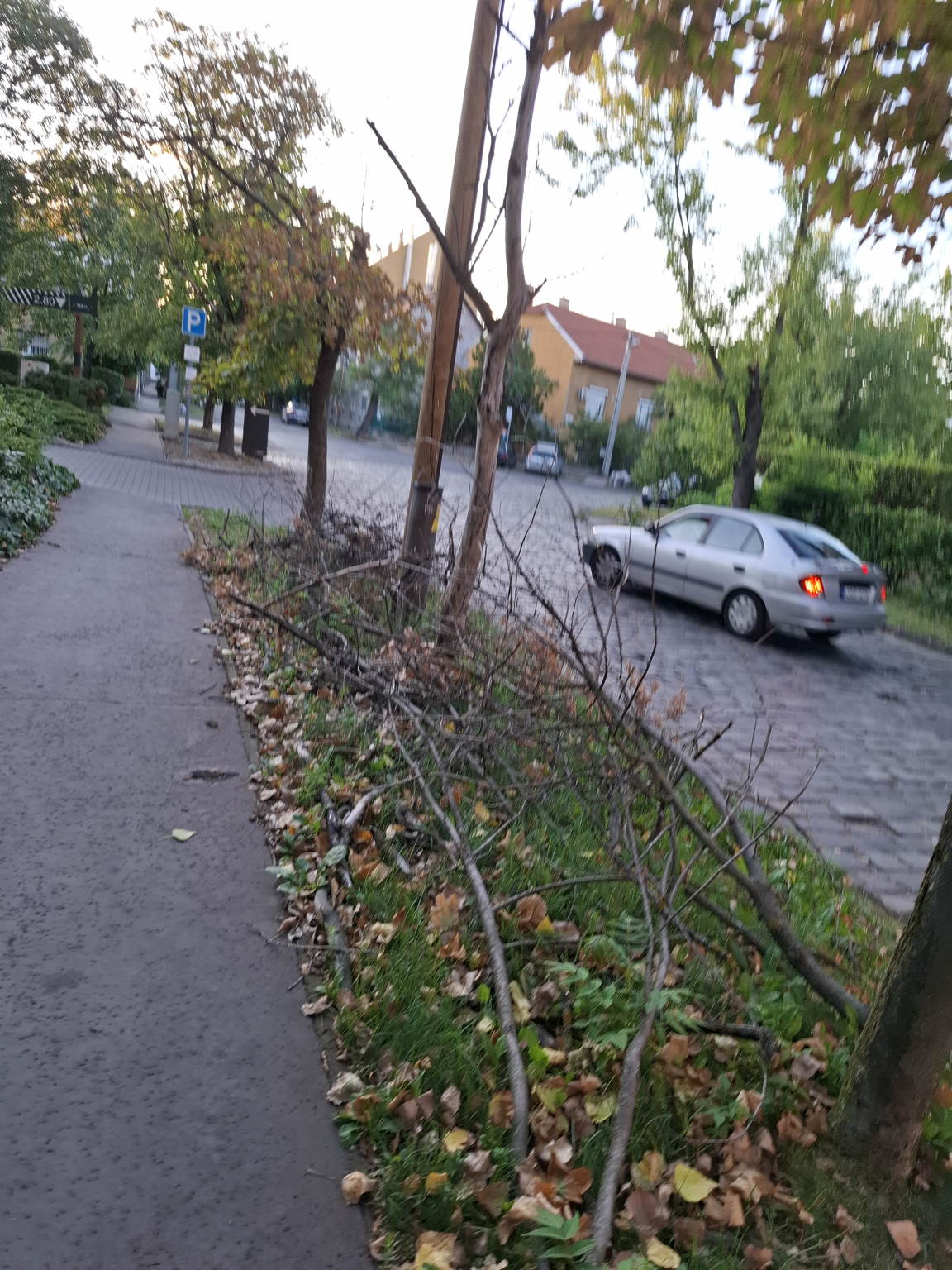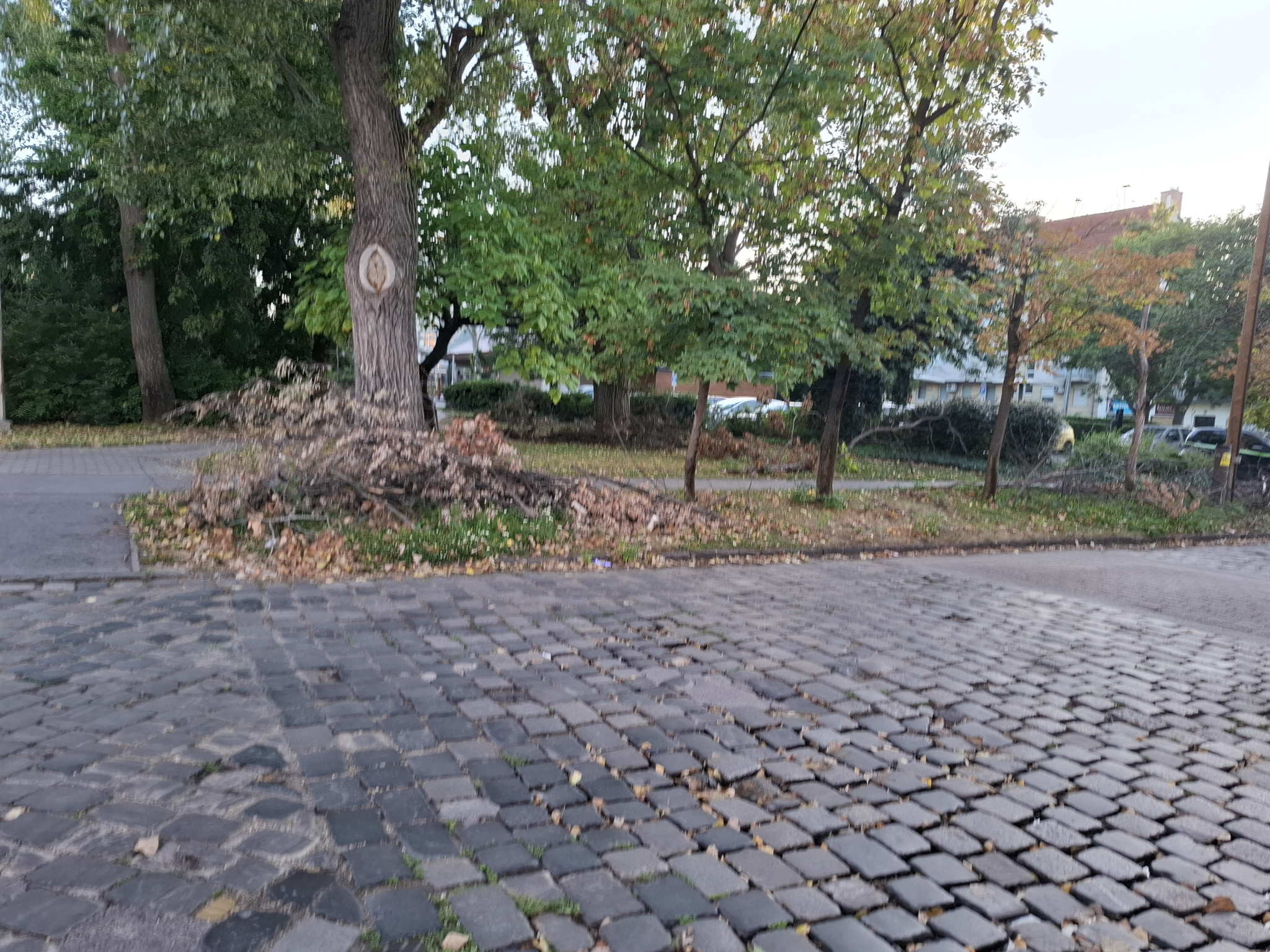 Letört vagy levágott nagy faágak vannak a megjelölt helyen.