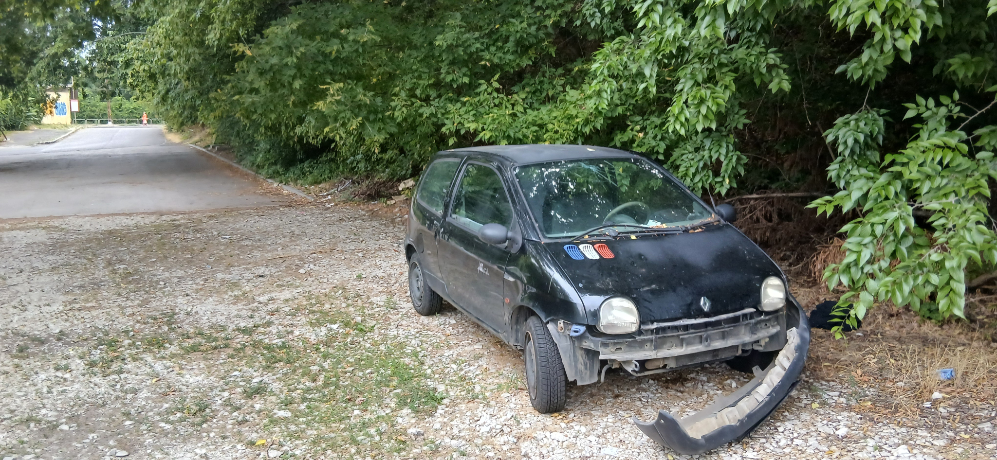 Kb. 3 hete parkol egy autó a Ferencvárosi Kézilabdacsarnok és az Oázis Kertészet kőbányai áruházának parkolója melletti közterületen. Az elején még rendszám volt rajta, de azt az elmúlt héten leszedték. Azóta már kezdik darabokra szedni.