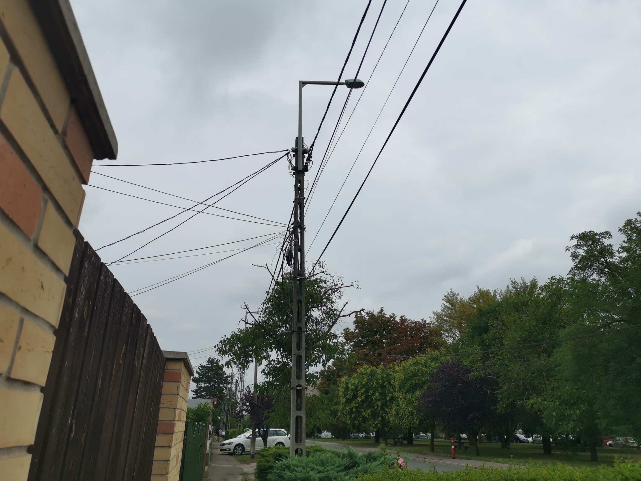 Budapest XVII. Kerület Borsó utca 67.számú ház előtt lelógó vezeték.