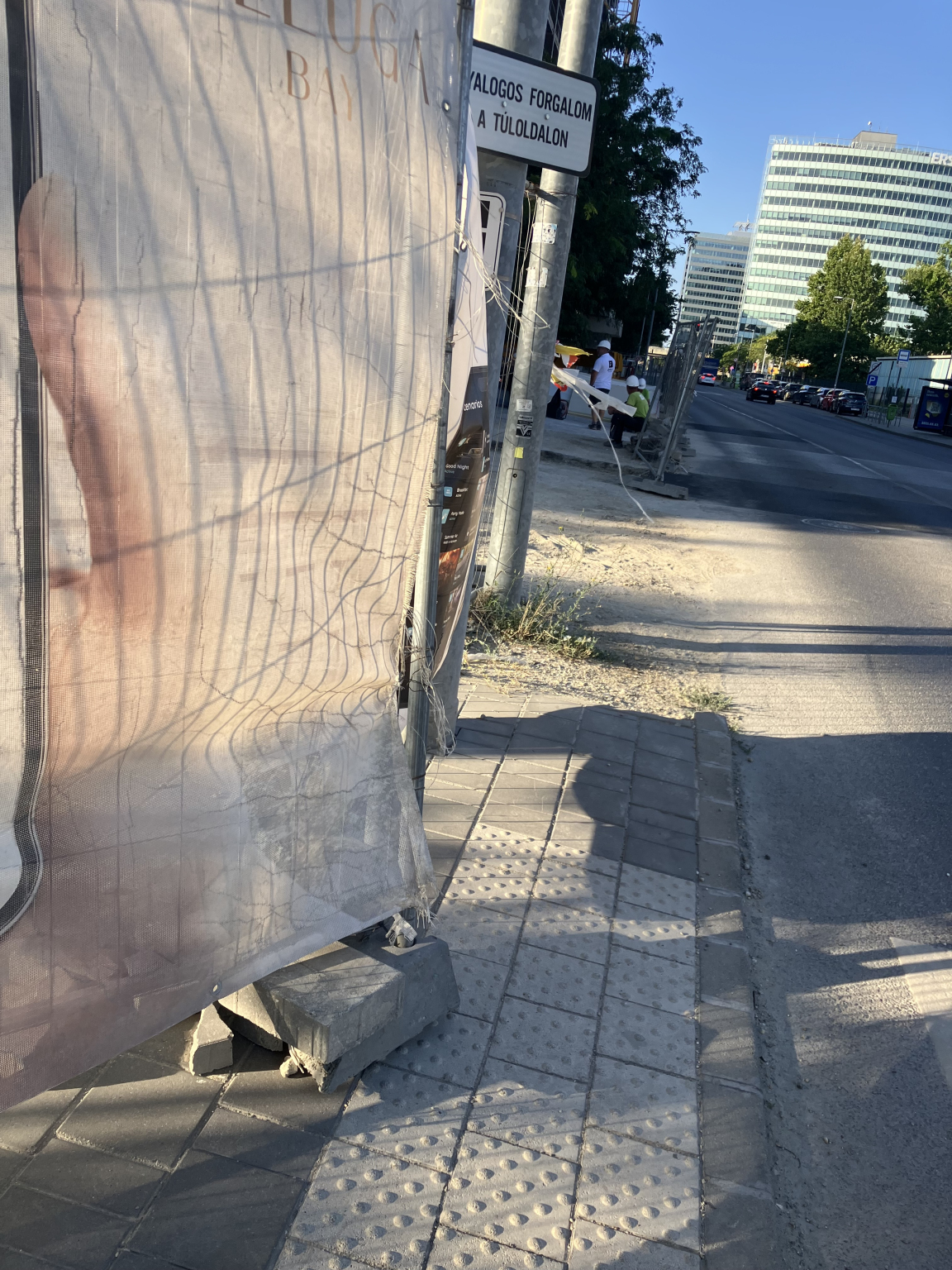 A Dagály strand előtti nyomógombos zebrát hónapok óta egyre jobban elállja a szemben lévő Beluga bay lakópark építkezés. Mostanra a kocsik közé kell kilépnie annak, aki meg akarja nyomni az átkelést jelző gombot.