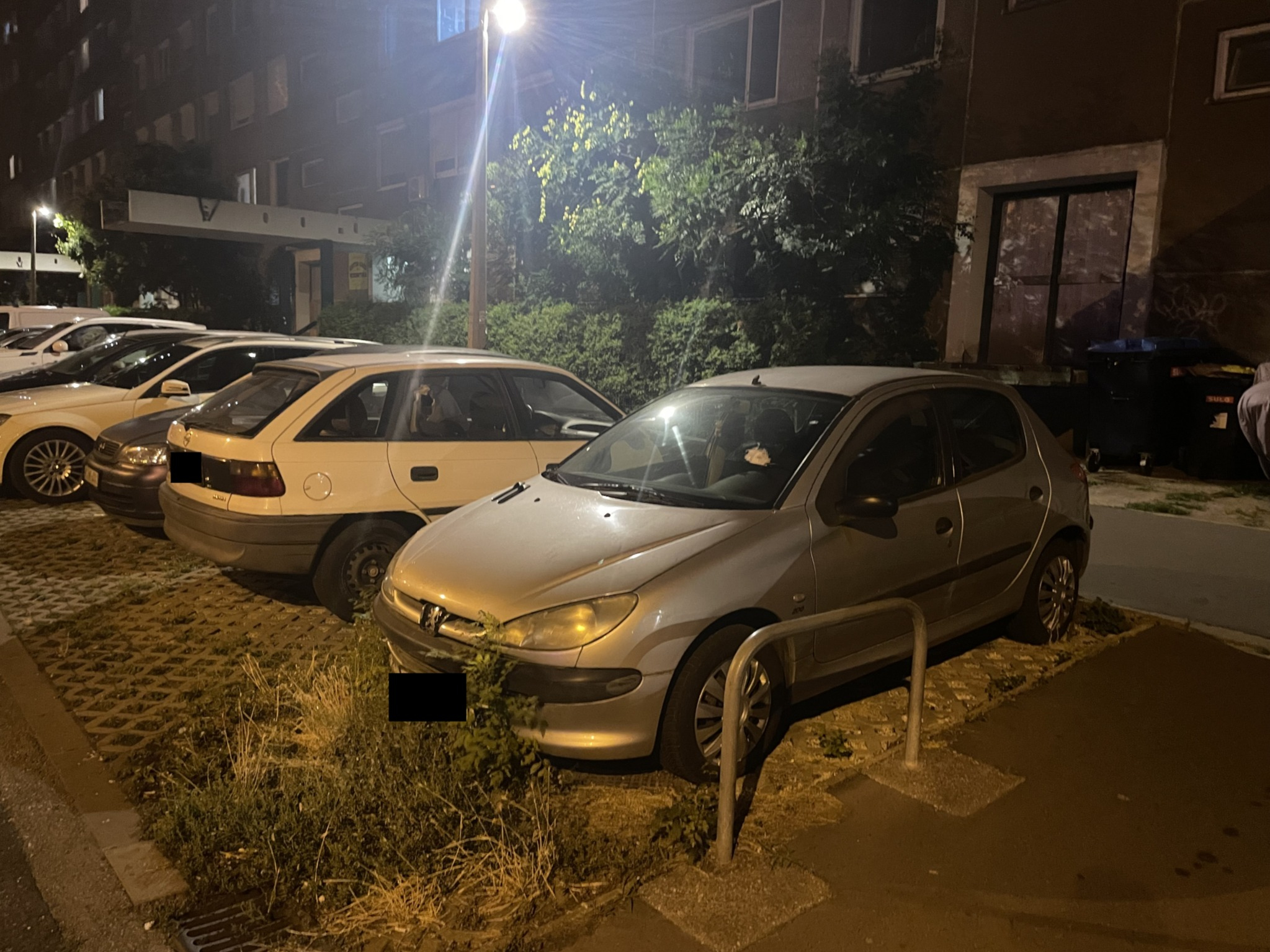 Elhagyott és üzemképtelen szürke Peugeot teljesen belőtte a gaz