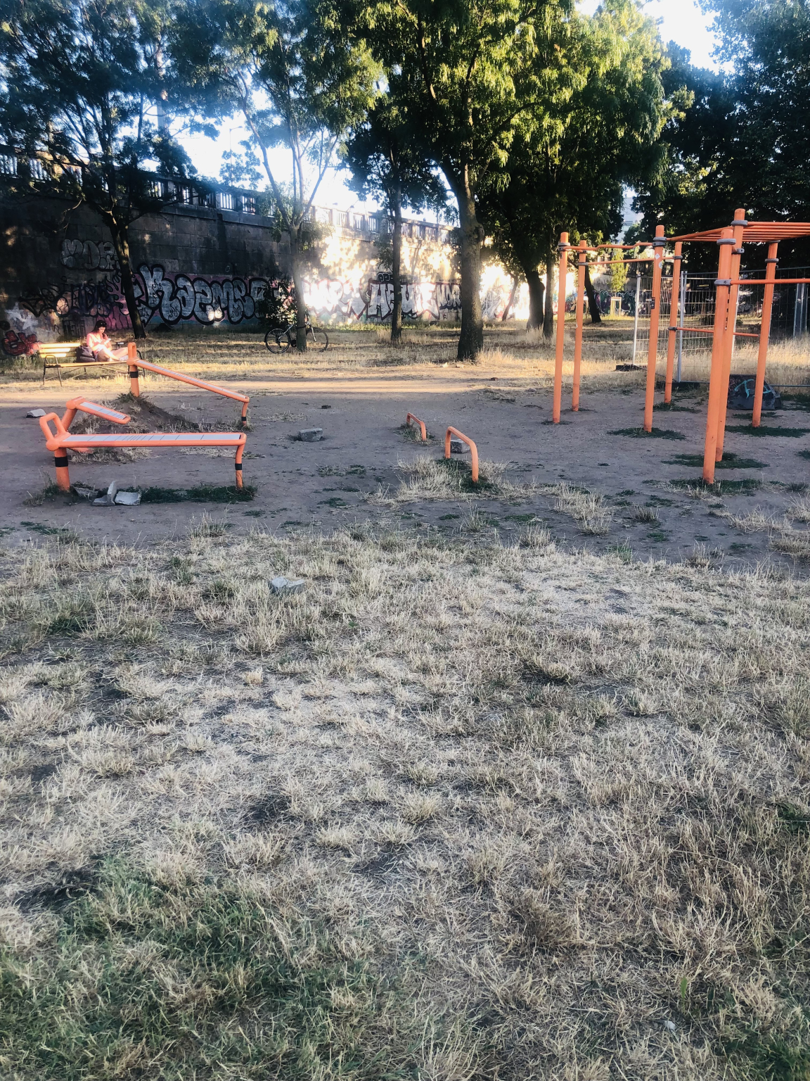 A Goldmann György téri fitness park nagyon lepusztult, mondhatni befejezetlen állapotban van.