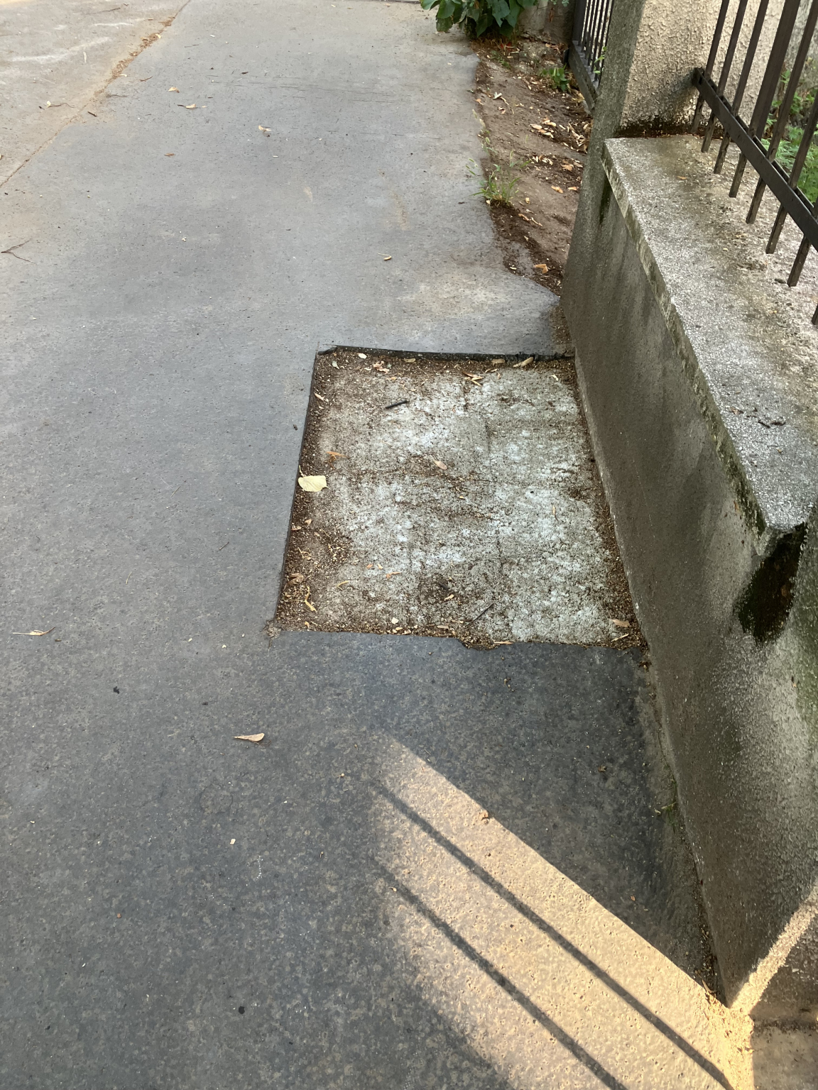 A Gyarmat utca 51/B szám előtt felbontották egy kis helyen a járdán az aszfaltot és elmaradt a visszajavitas.