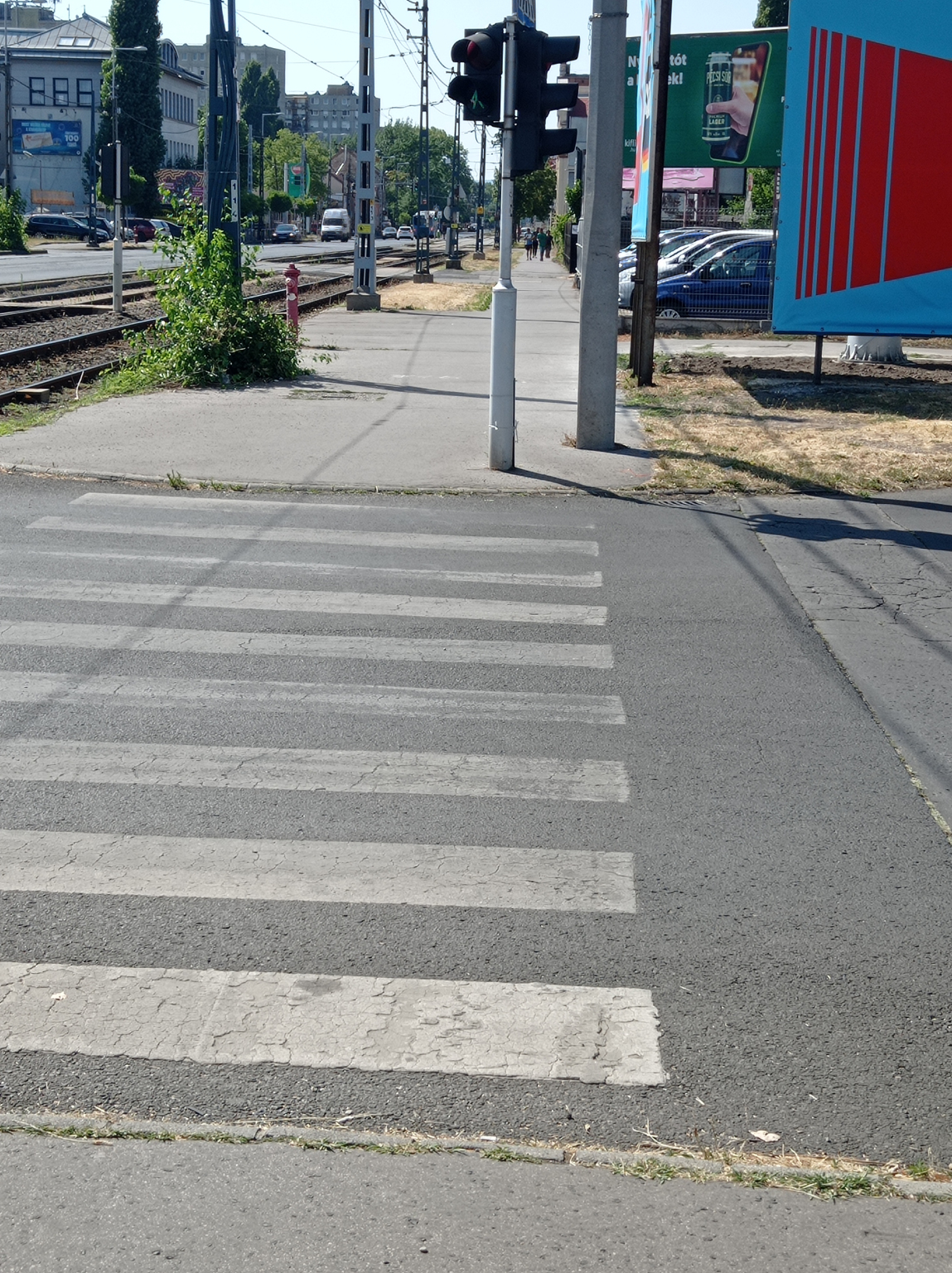 A megadott helyszínen lévő gyalogos jelző el van fordulva, így az rendetlen és akár esetleg veszélyes is lehet. A visszafordítást rövid úton nem lehetett megoldani.