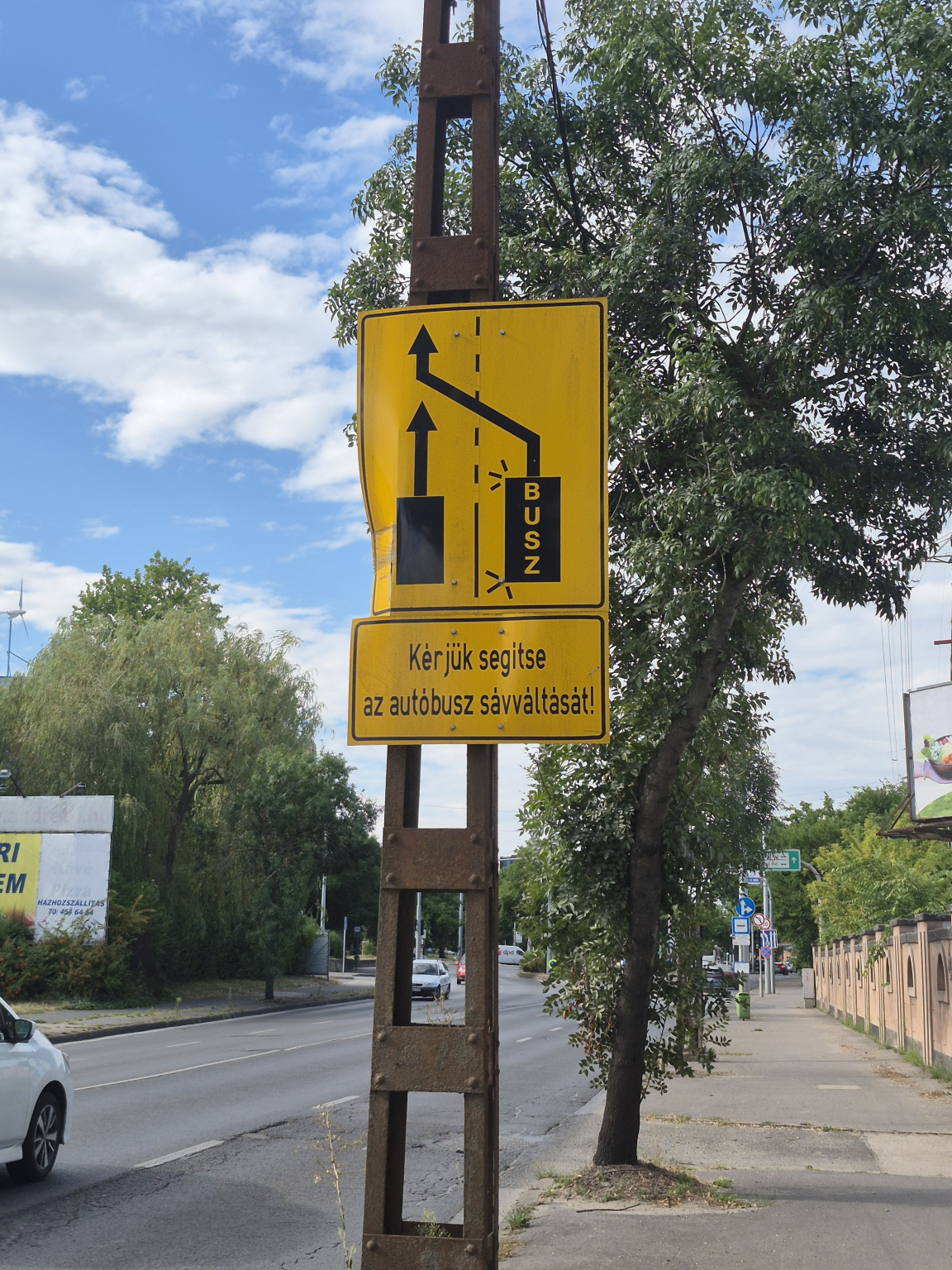 A közlekedési tábla el van hajolva.