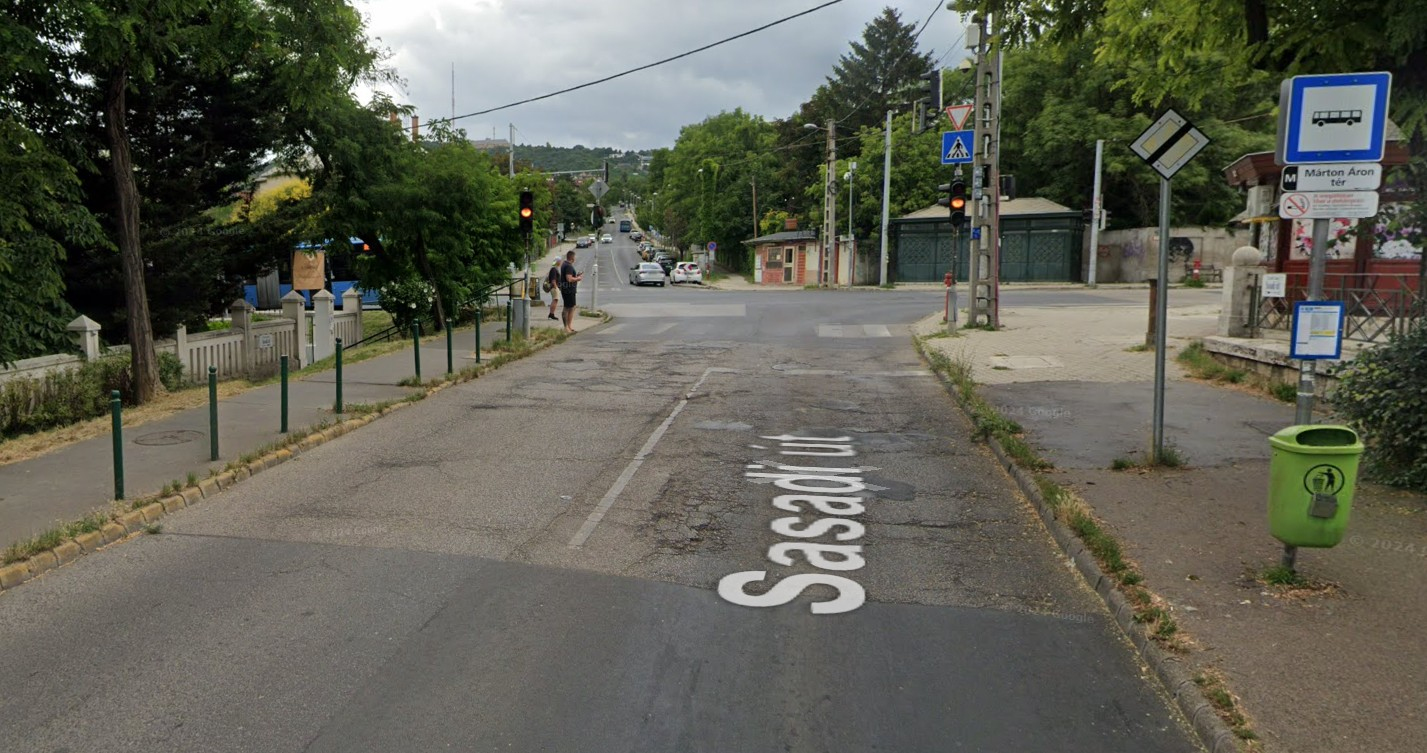 Sasadi út burkolata a Márton Áron téri lámpa előtti szakaszon balesetveszélyes.