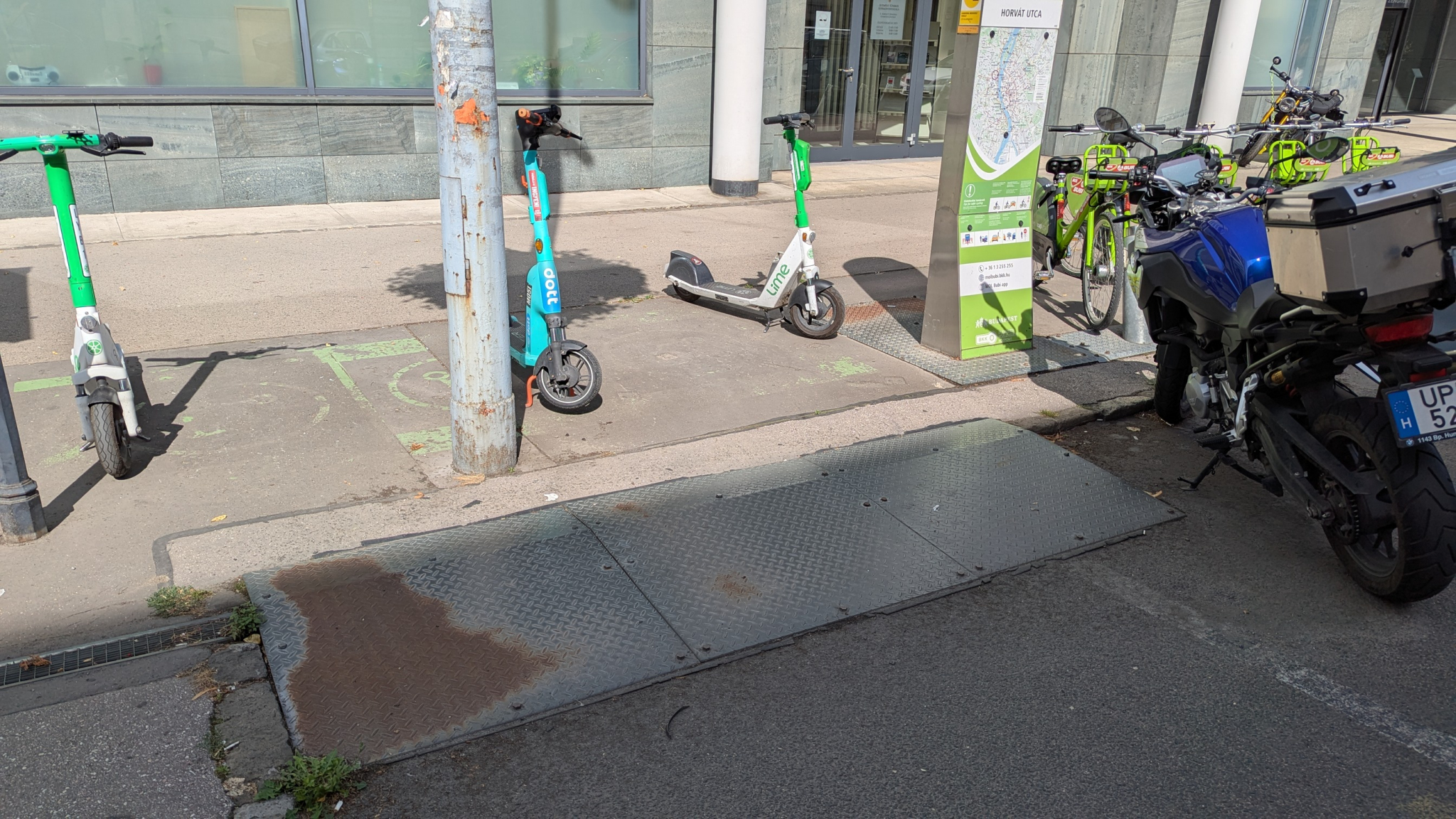 Sajnálatos módon a később kijelölt rollerparkolót a rámpa elé festették fel, így az oda - szabályosan - elhelyezett rollerek ellehetetlenítik a rámpa használatát. Feltehetően aki oda tervezte a rollerparkolót, vagy a rámpát, vagy a Bubi állomást nem vette figyelembe.