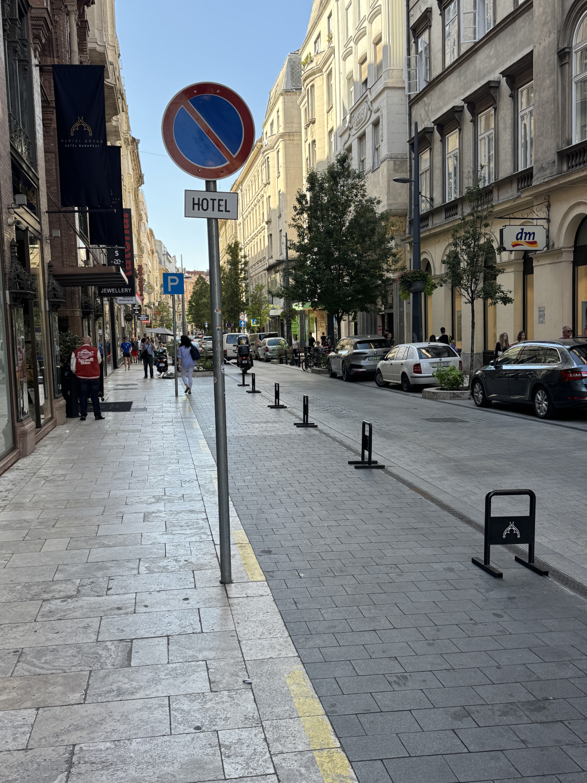 A Párisi Udvar Hotel véleményen szerint jogosulatlanul foglal parkolási helyeket a hotelnek, ahogy a képen is látszik
