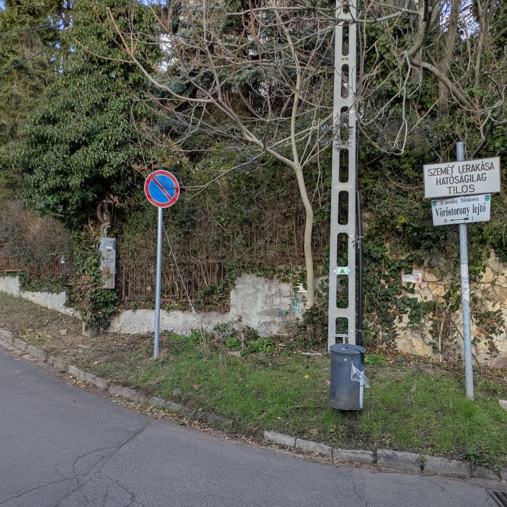 Bp. II. ker. Vöröstorony utca és Vöröstorony lejtő kereszteződésében a várakozni tilos táblát benőtte a növényzet. Egyébként is elég rendetlen ez a sarok, és a növényzet miatt nem is lehet jól belátni. Sajnos ezzel itt mindig gond van. Jó lenne valami hosszú távú megoldást találni a problémára.