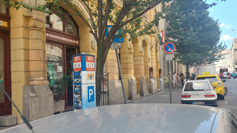 A mozgássérült parkoló felfestése lekopott a Wesselényi utca 17. szám előtt a 7. kerületben, a tábla pedig az előtte lévő fa miatt nem látható - ezért sokan megállnak a parkolóhelyen, úgy, hogy nem is tudják, hogy rossz helyen parkolnak.