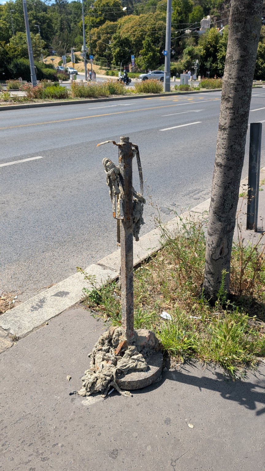 Egy rozsdás bója hever hetek óta a Gellért téren.