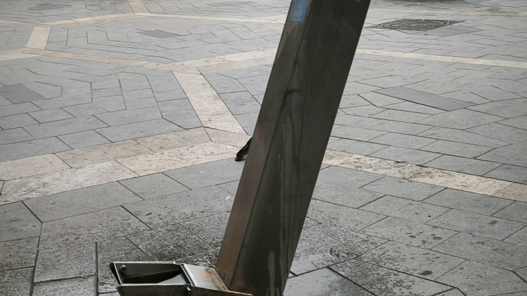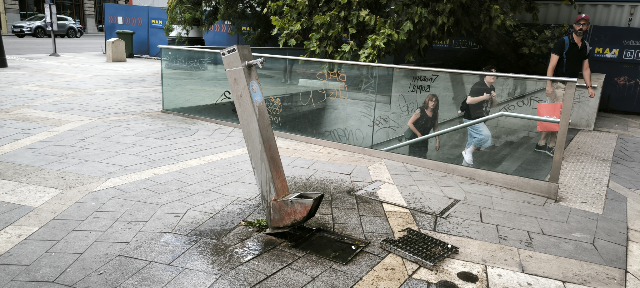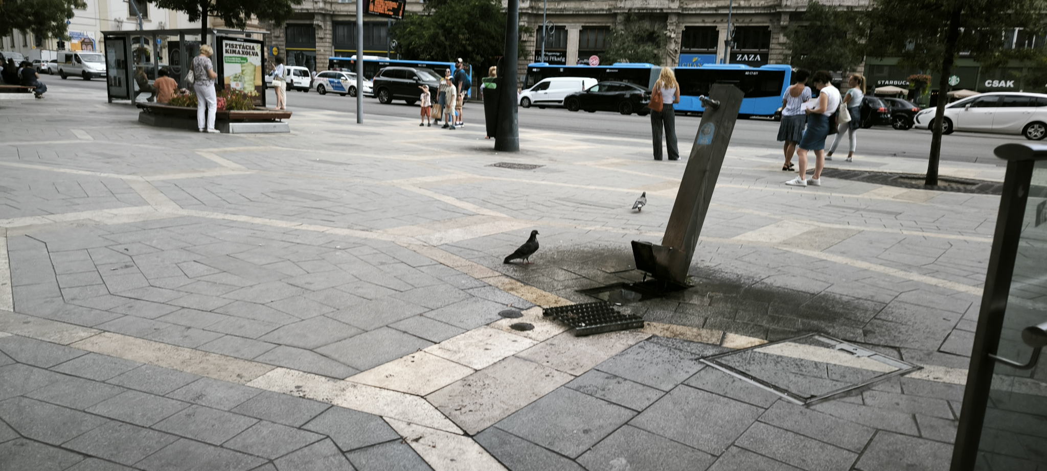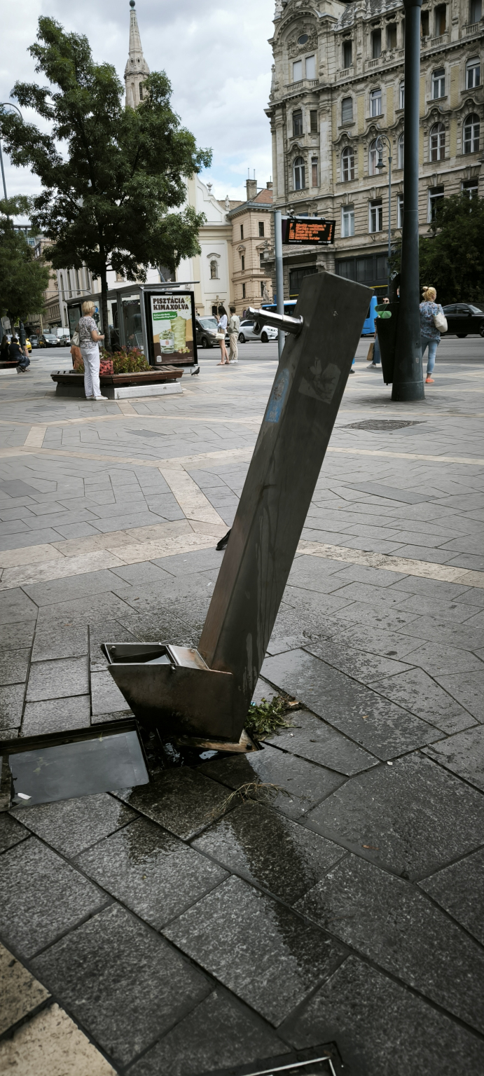 A Ferenciek terén lévő közkút kiszakadt, megdőlt.