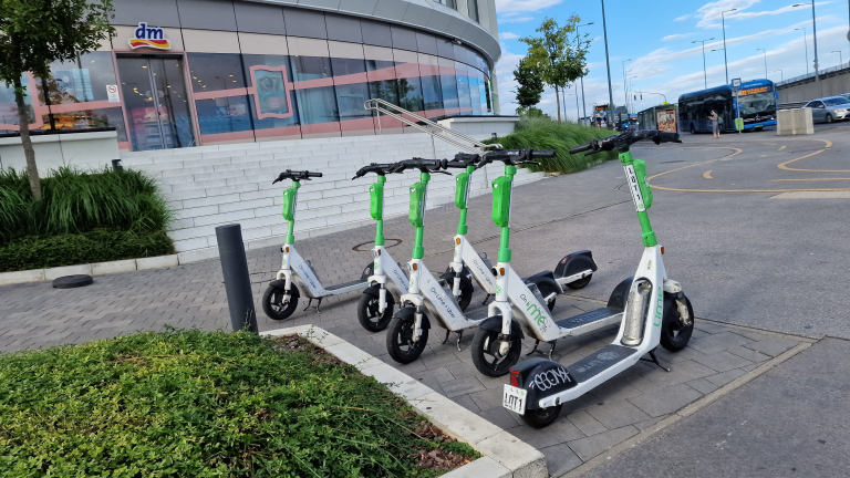 Koszorúslány utca széthagyott közösségi rollerek