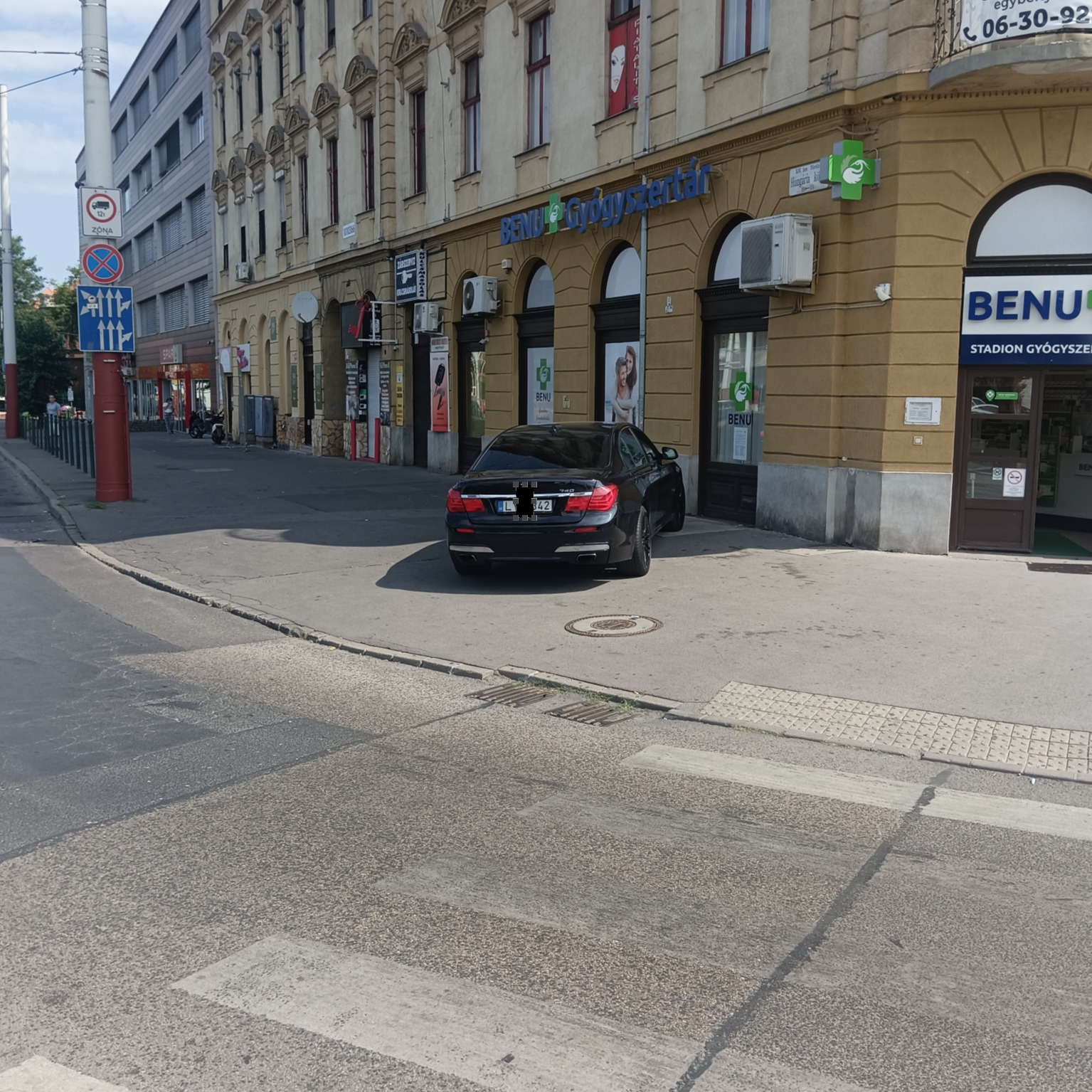 A hungária Kerepesi út sarkán egy autó a járdán parkol