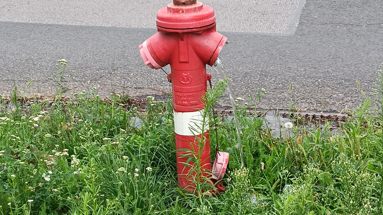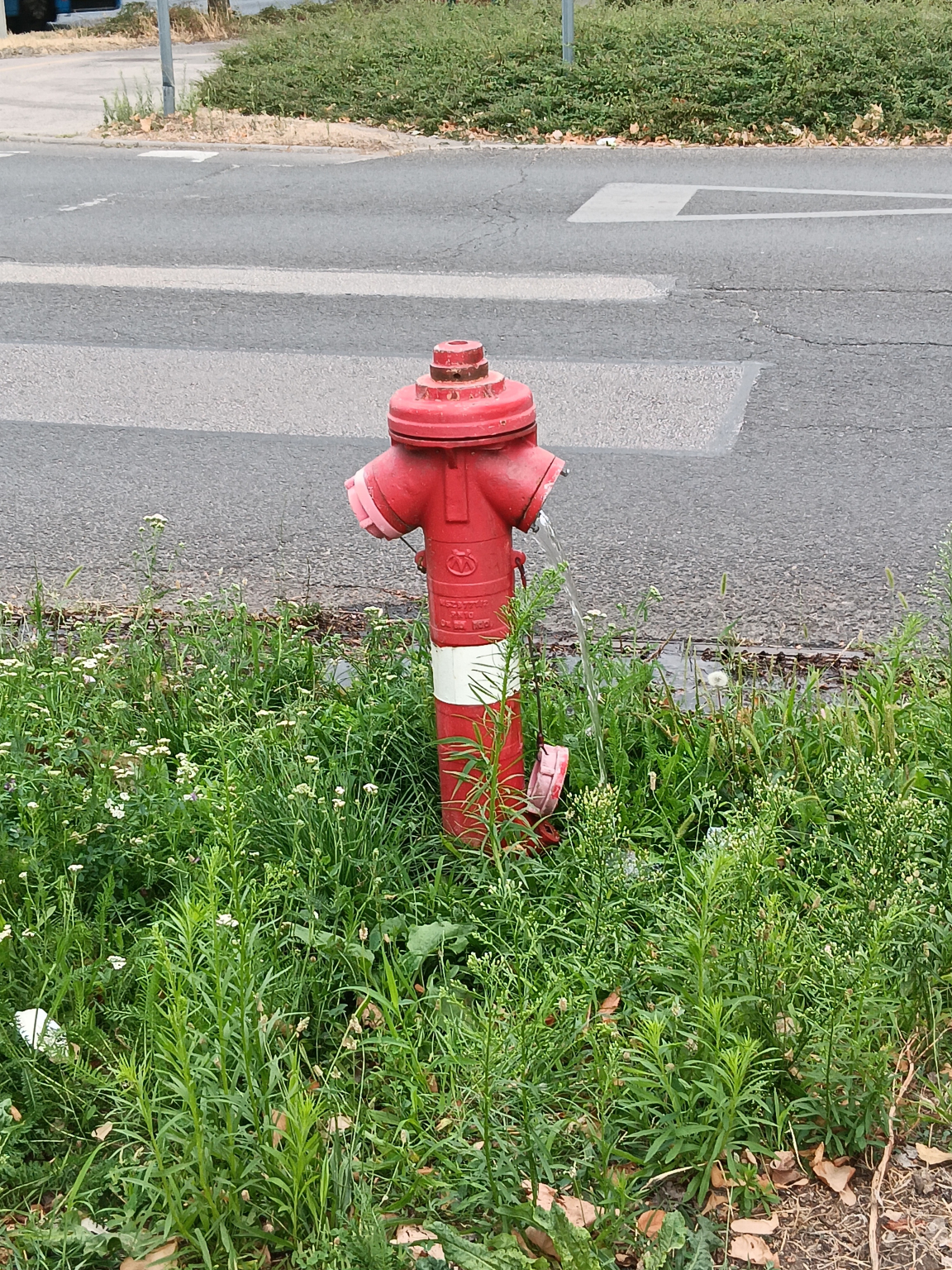 11. kerületben a Pázmány Péter sétány és a Magyar Tudósok körútja sarkán, az Ericsson épületével szemben egy tűzcsapból folyik a víz.