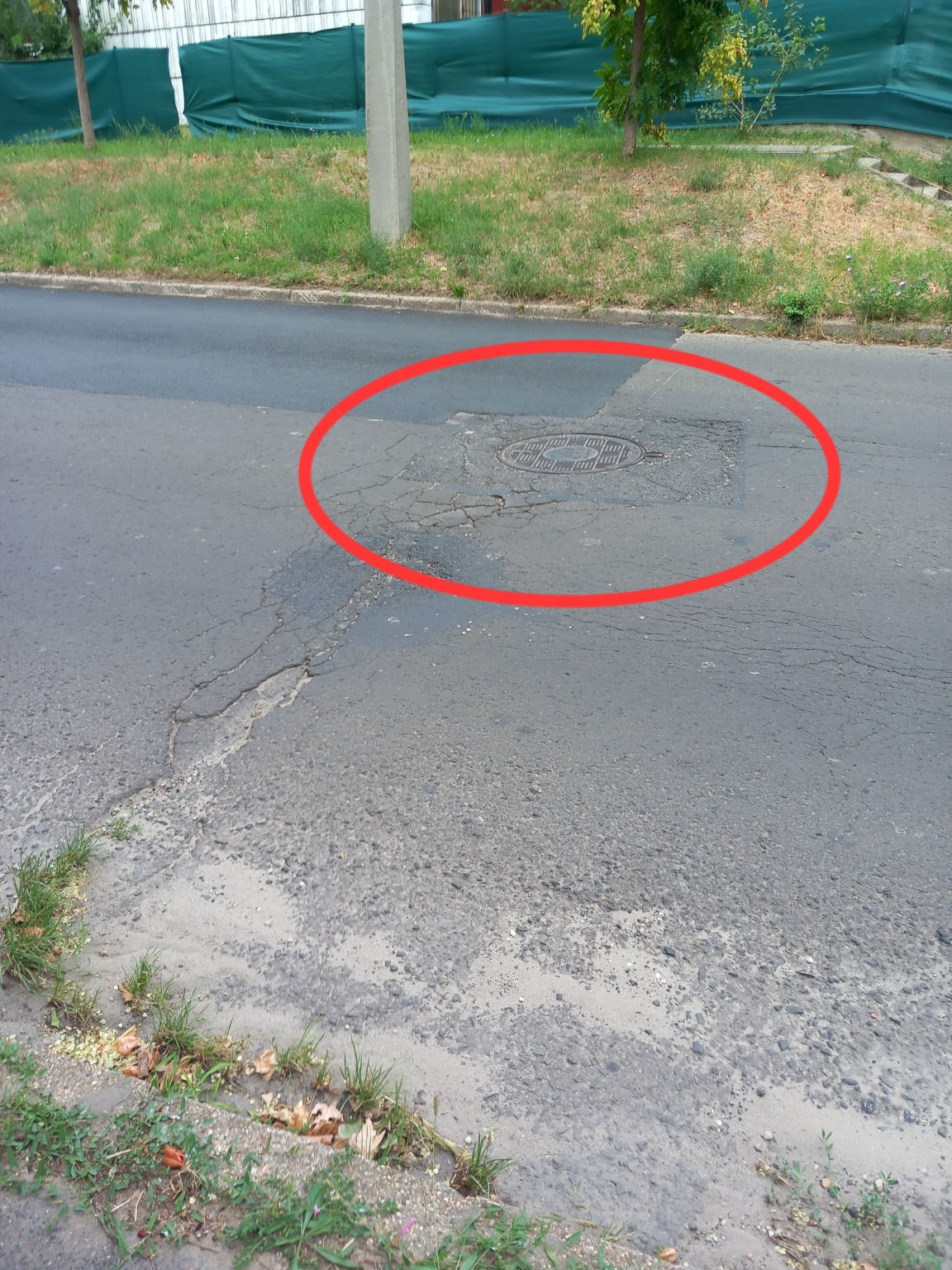 A Harmat utcai útvonalon 68 as, 268 as és 185 ös autóbuszvonalon, útkereszteszödésen a csatornafedlap süllyedés látható ami kocsikon, teherautokon, buszokon kilengéseken kárt okozhat