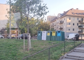 A Török Flóris utca 2a előtti szelektív hulladékgyűjtőnél kiszáradt egy facsemete.