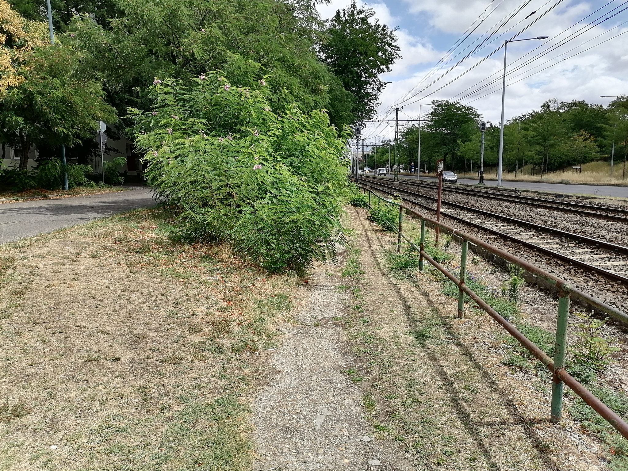 Egy írtandó, inváziós faj, akác növi be a teljes járdát, az egyetlen utat, ami összeköti az Örs vezér terét Rakosfalvával.