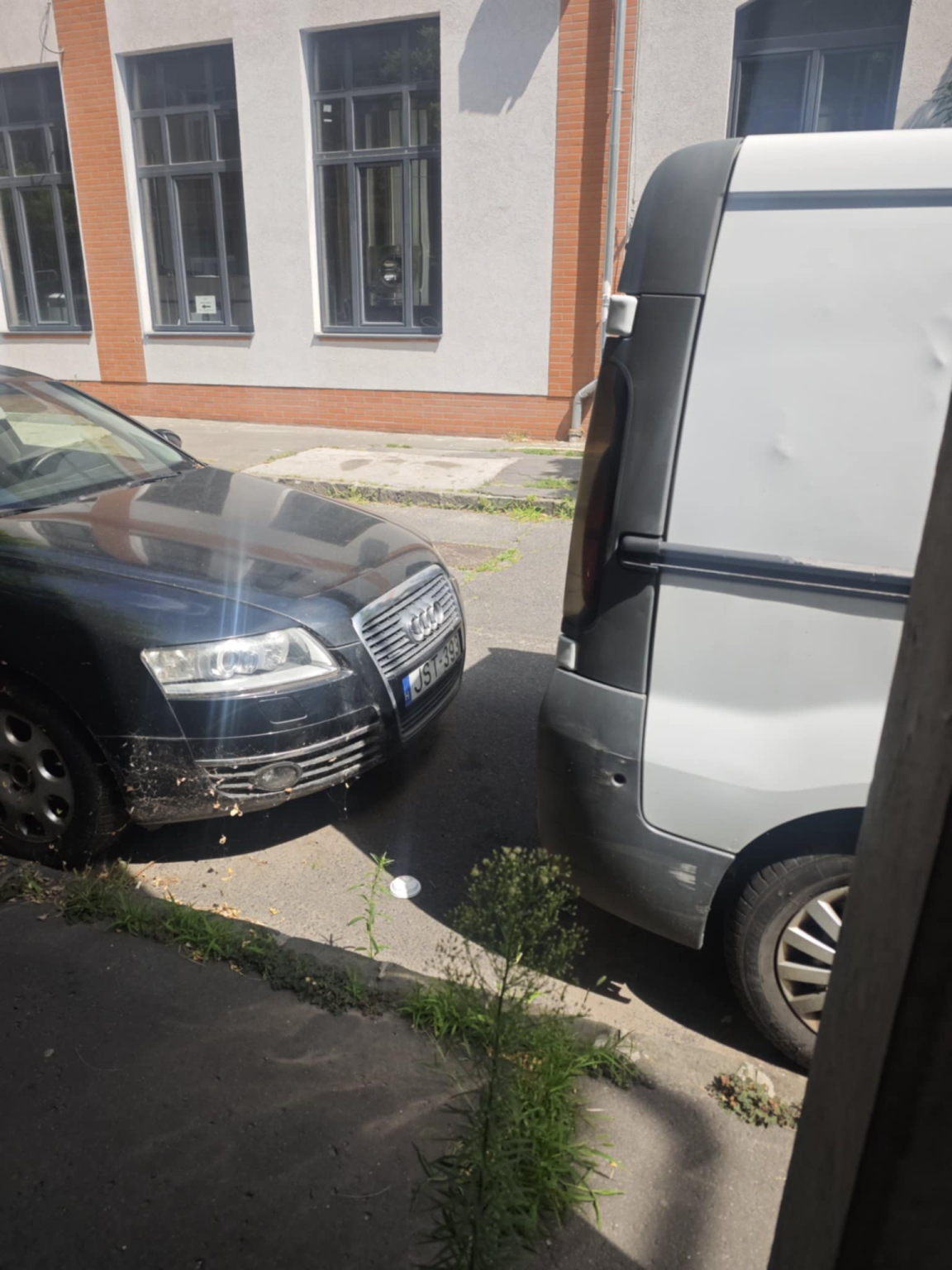 IV. kerület Béla utca elején egy 2024 óta lejárt műszaki vizsgás Audi található.