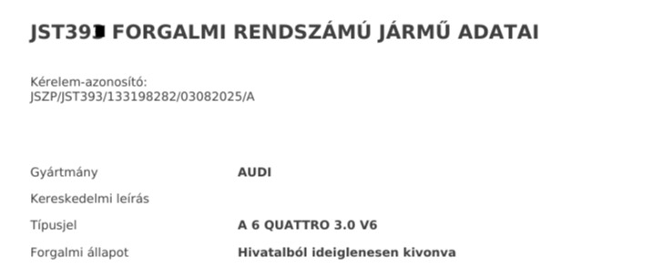 Gépjármű elszállítása szeptember 24-ére van ütemezve.