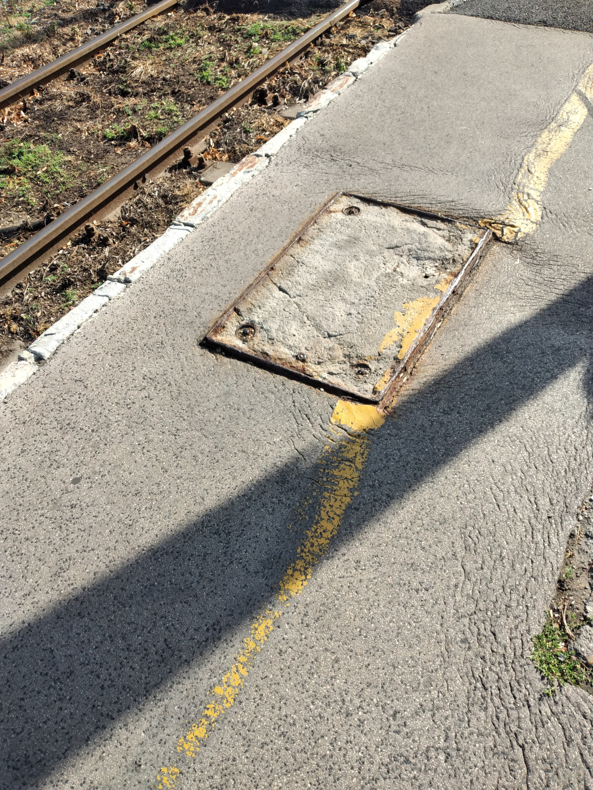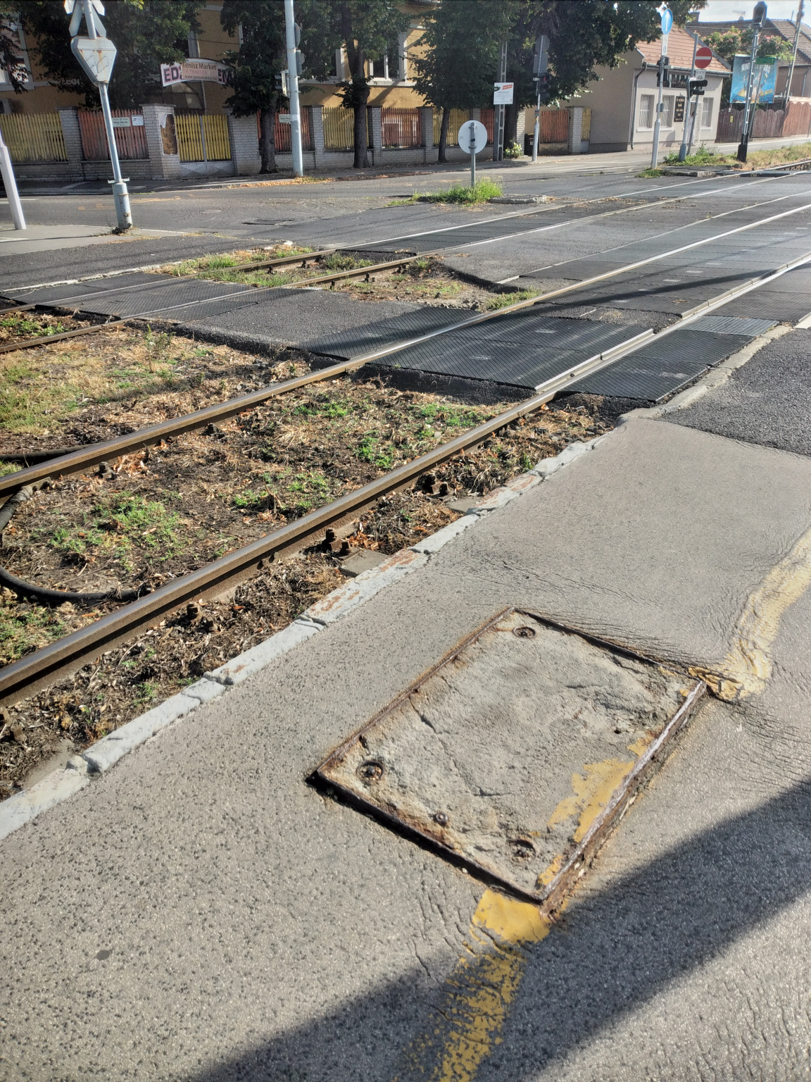 A sashalmi HÉV átjárónál lévő felirat nélküli fedlap felső rétege nagyon lekopott, botlásveszélyes. Kérem szépen rendbe tenni.